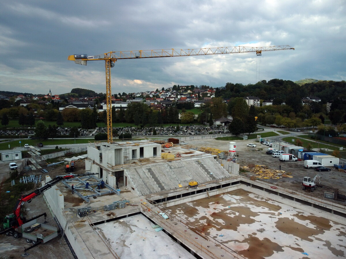 V mesecu oktobru zidarska in betonska dela na Bazenu Krško prehajajo v zaključno fazo, hkrati pa so se intenzivno pričela izvajati ostala obrtniška dela. Sestavlja se kovinska konstrukcija za streho, vzporedno pa potekajo strojno inštalacijska (vgradnja prezračevalnih kanalov) ter elektro inštalacijska dela. V izdelavi je bazenska školjka, prav tako pa se že vgrajuje določena bazenska tehnologija, potrebna za delovanje bazena (predinštalacije in oprema).