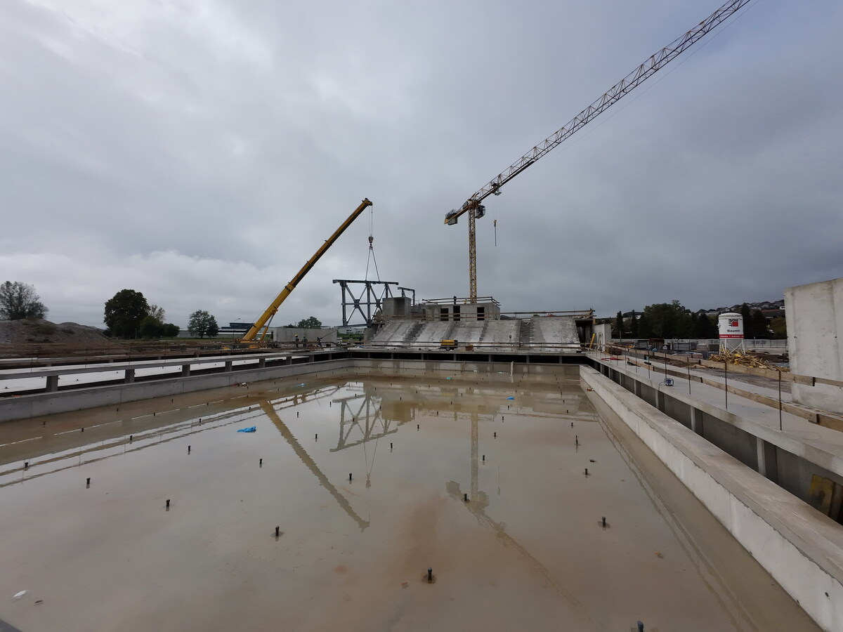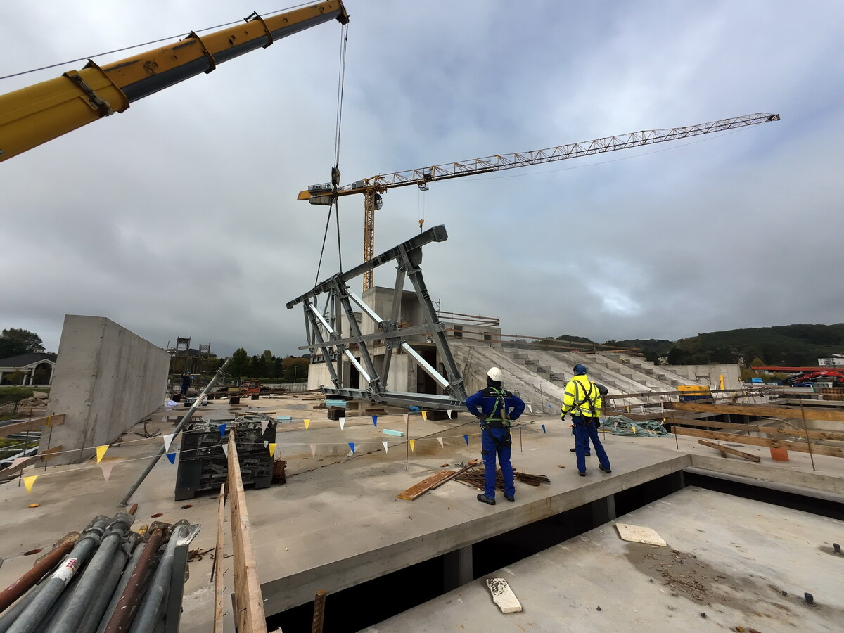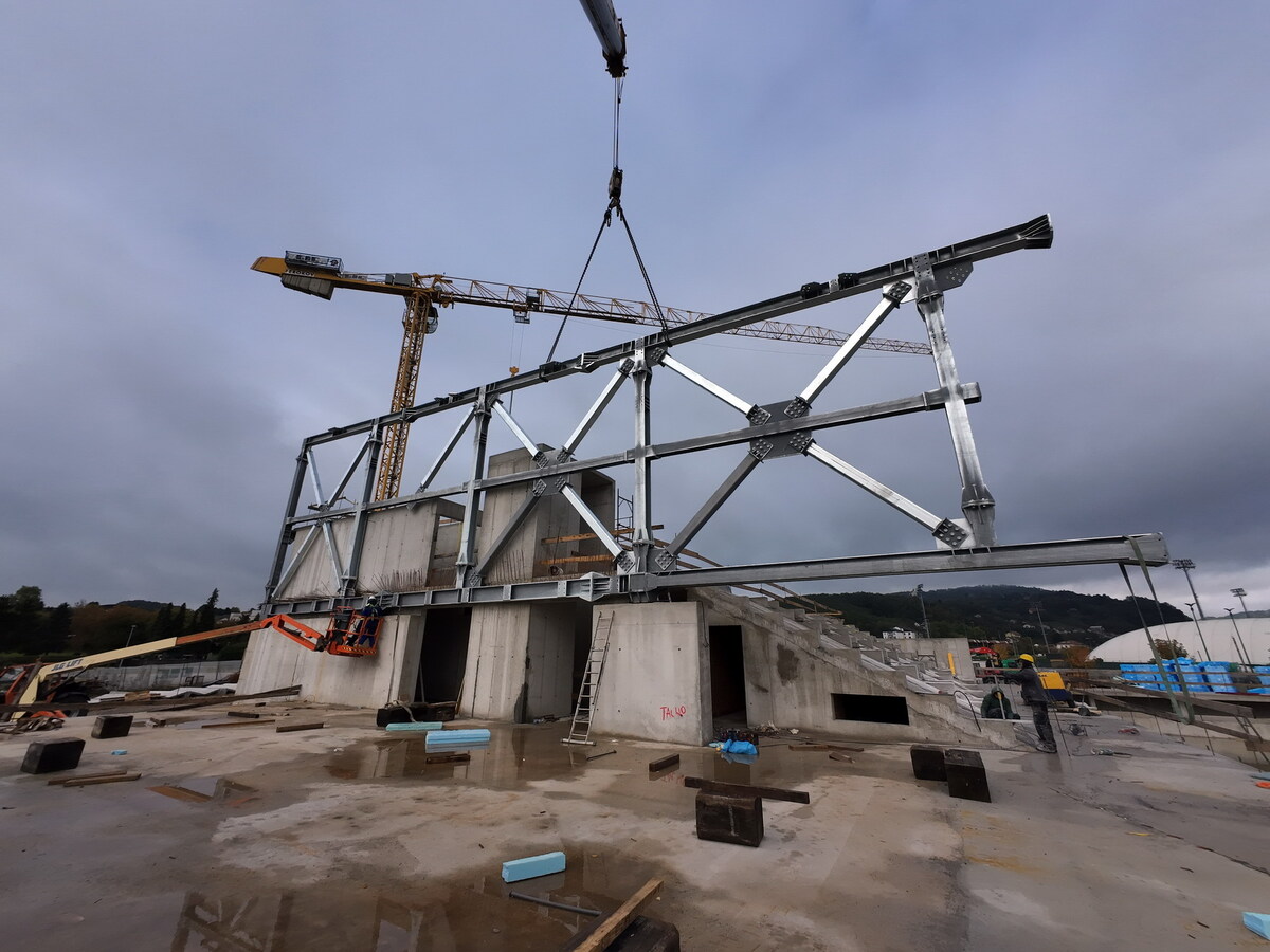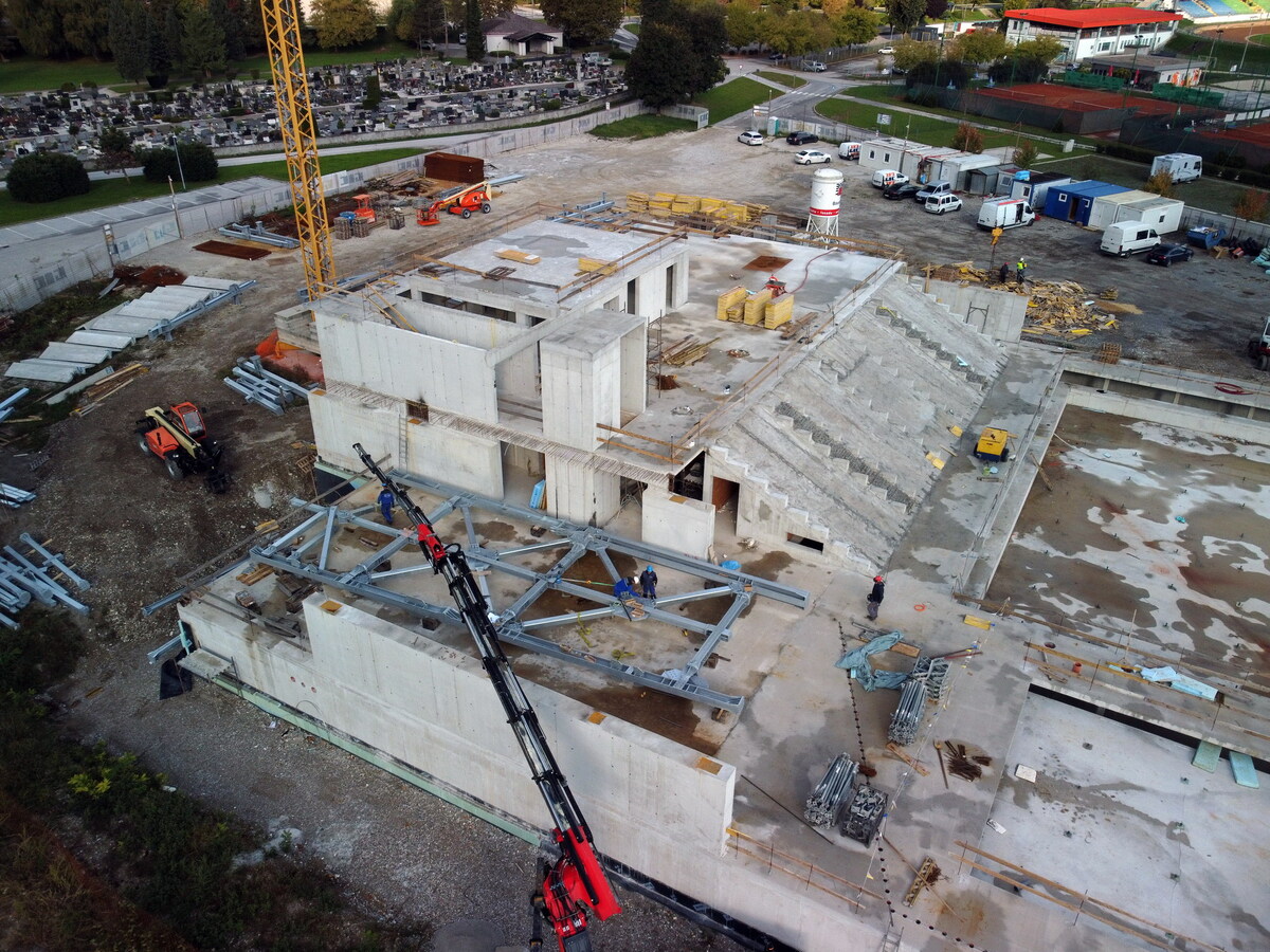 V avgustu so na gradbišču potekala predvsem betonska dela, hkrati pa se je v delavnici izdelovala jeklena konstrukcija za streho.