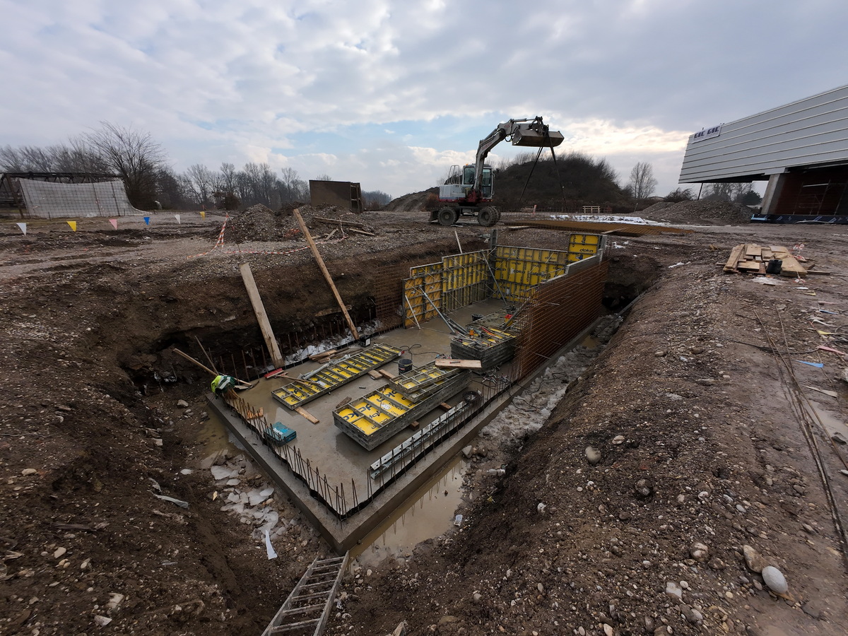 V marcu so se pričela dela na temeljni plošči. Ta faza je zajemala vgradnjo podbetona, izolacije in hidroizolacije temeljne plošče ter armiranje talne plošče.