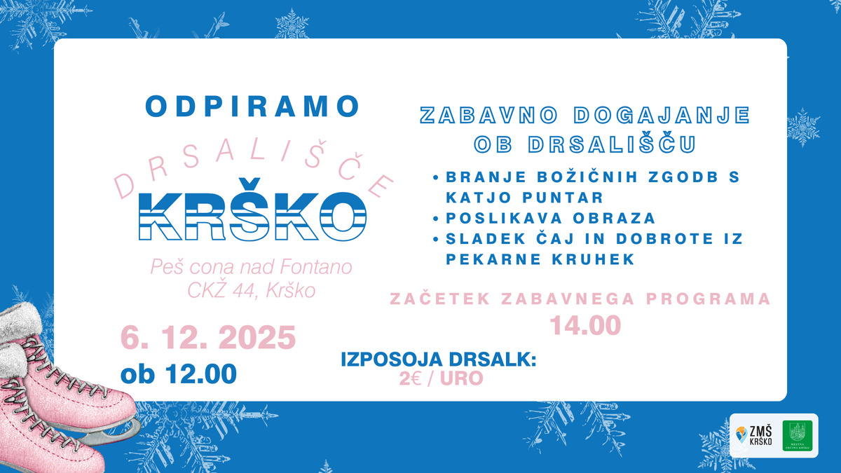 Pridružite se nam ob odprtju drsališča v Krškem, v soboto, 6. decembra, ob 12. uri v peš coni v starem mestnem jedru (nad Fontano).