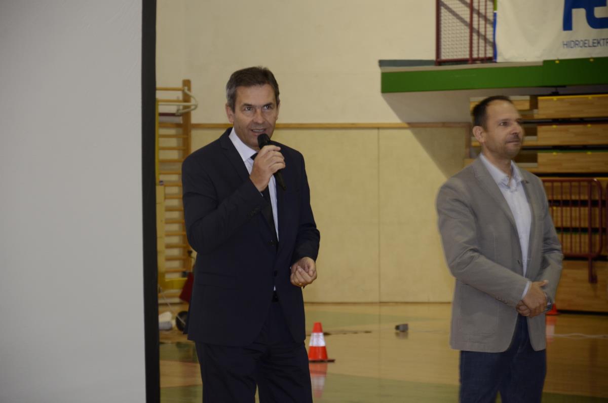 Učence in dijake sta pozdravila tudi župan občine Krško mag. Miran Stanko in vodja projekta ETM na Občini Krško Romana Pečnik, ki je med drugim dijakom predstavila tudi možnost izposoje koles v mestu.