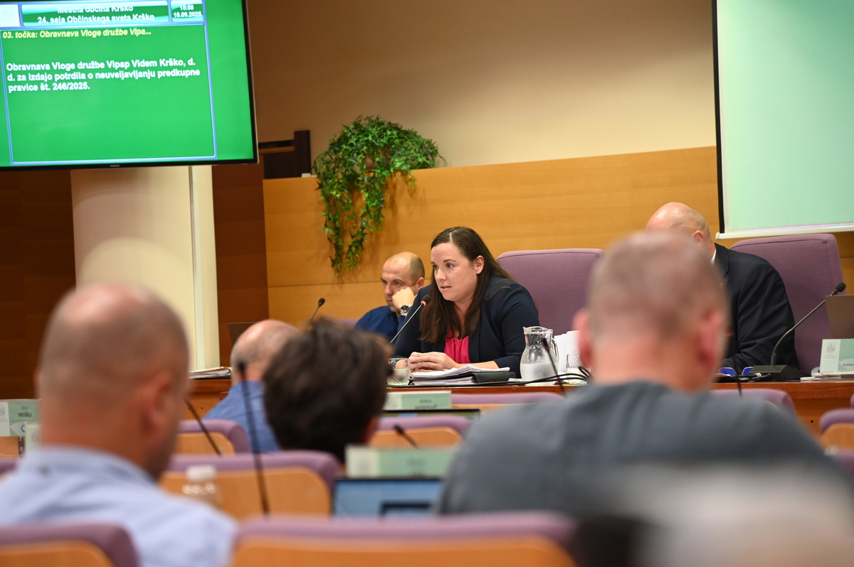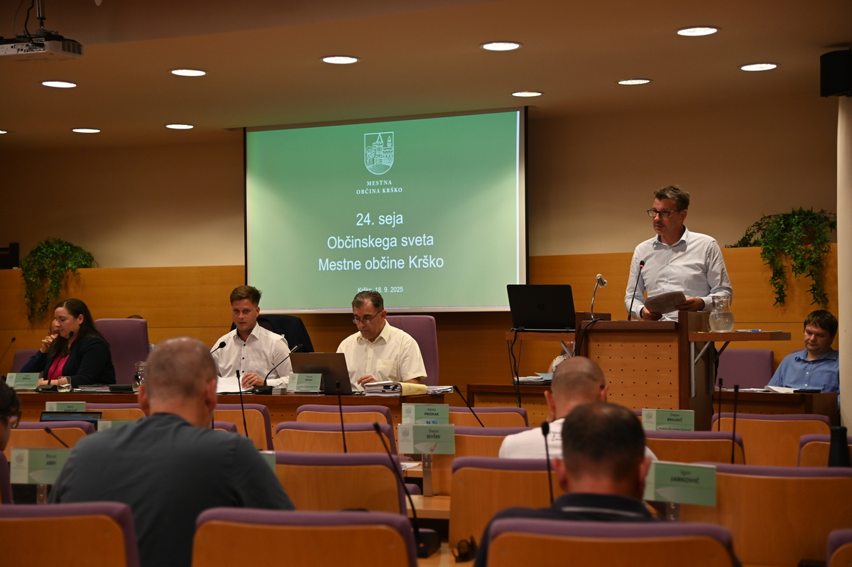 Na včerajšnji 24. redni seji Občinskega sveta Mestne občine Krško so se svetnice in svetniki med drugim seznanili z vlogo družbe Vipap Videm Krško, d. d. v zvezi s prodajo čistilne naprave, potrdili investicijsko dokumentacijo za novogradnjo Osnovne šole dr. Mihajla Rostoharja Krško, obravnavali poročilo o izvrševanju proračuna v prvi polovici leta 2025 ter sprejeli investicijsko dokumentacijo za pomembne projekte trajnostne mobilnosti – ureditev večnamenske poti ob glavni cesti G1-5 in kolesarske povezave Sava bike.
