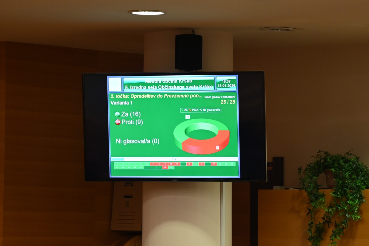 Občinski svet Mestne občine Krško je na včerajšnji 5. izredni seji sprejel sklep o zavrnitvi prevzemne ponudbe za odkup delnic družbe Kostak, komunalno in gradbeno podjetje, d. d., ki jo je podal prevzemnik ŽARN, d. o. o., skupaj z osebami, s katerimi deluje usklajeno v smislu določbe 8. člena ZPre-1 da izvede nakup (vseh) preostalih delnic družbe Kostak. Prevzemna ponudba, objavljena 19. decembra 2025, se je nanašala na odkup preostalih delnic družbe Kostak po ceni 550 evrov na delnico.