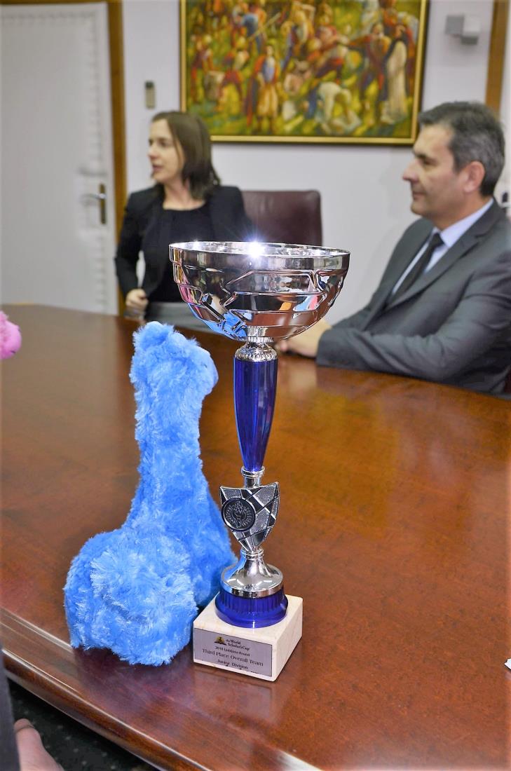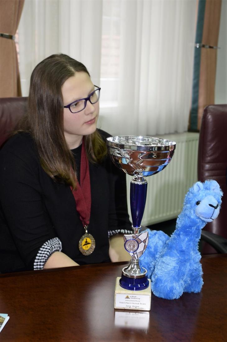 Krško, Senovo, Ljubljana, 22. februar 2018 – Osmošolke OŠ XIV. divizije Senovo Lea Šterban, Maja Kmetec in Petra Požun so na tekmovanju World's Scholar Cup v začetku februarja v Ljubljani dosegle odlično 3. mesto. Gre za tekmovanje v angleškem jeziku, na katerem so se učenci iz Slovenije, Srbije in Avstrije pomerili v znanju s šestih različnih področij. Za osvojene tri zlate in šest srebrnih medalj, za 1. mesto v kvizu in odlično skupno tretje mesto je učenkam in njihovi mentorici Lei Opravž Ostrelič čestital tudi župan občine Krško mag. Miran Stanko.