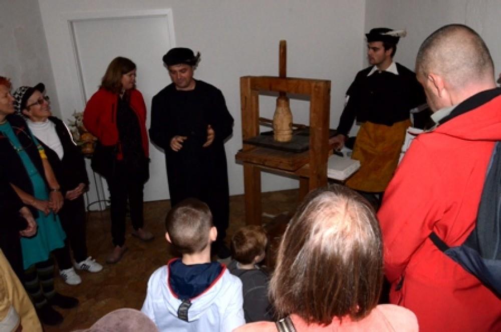 Obiskali so Mencingerjevo hišo, kjer so si ogledali protestantske renesančne portrete, nadaljevali mimo kapucinskega samostana v gaj zaslužnih občank in občanov, kjer sta tudi kipa krških protestantov Adama Bohoriča in Jurija Dalmatina, potem pa se odpravili na videmsko stran mesta v spominski park Jurija Dalmatina ter pot zaključili v krški adventistični cerkvi, kjer so si ogledali srednjeveško tiskarno Vladimirja Abrama.