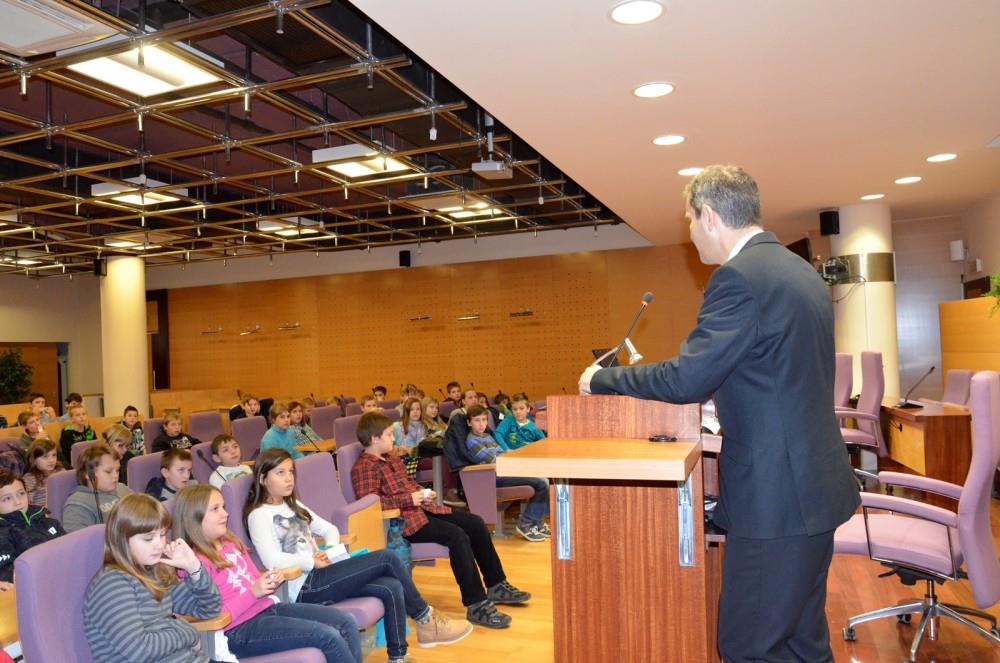 Župan občine Krško mag. Miran Stanko je danes gostil petošolke in petošolce Osnovne šole Jurija Dalmatina Krško.