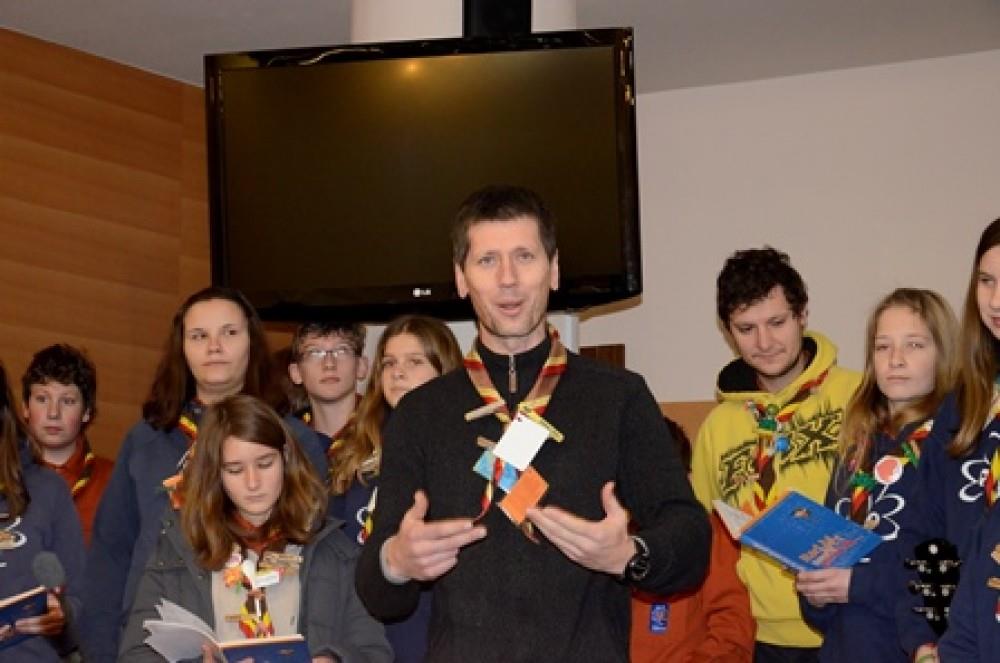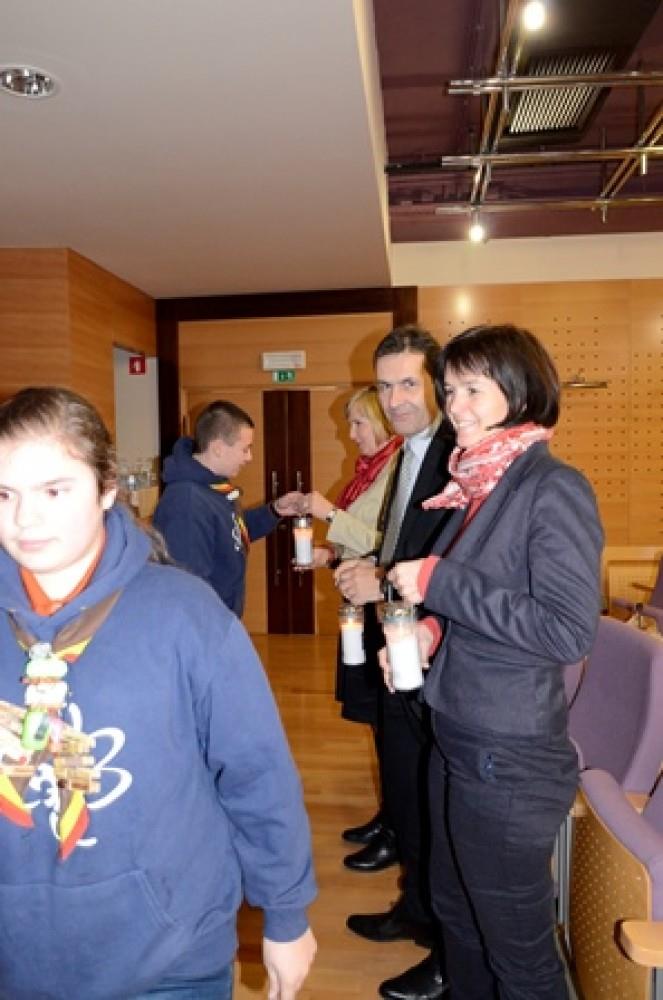 Skupina krških skavtov pod vodstvom videmskega župnika Mateja Markoviča so v petkovem dopoldnevu luč miru iz Betlehema prinesli tudi med zaposlene na občinski upravi.