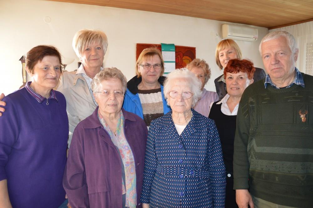 Amalija Češnovar v družbi sina, podžupanje občine Krško Ane Somrak, predsednice sveta KS mesta Krško Jožice MIkulanc in predstavnic krajevnih odborov Rdečega križa. Foto: B. Mavsar