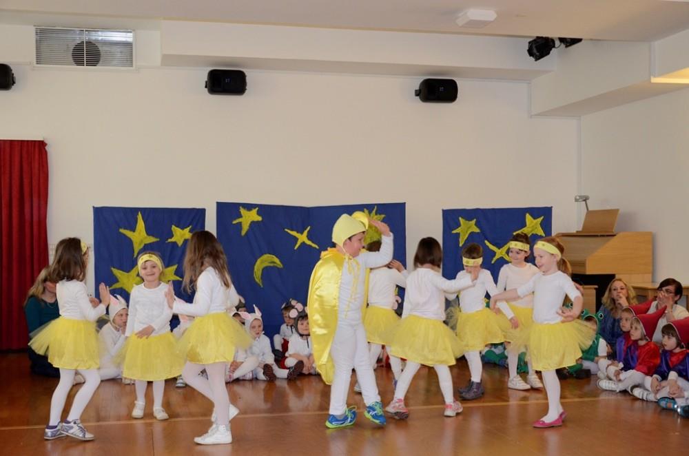 Otroci Vrtca Krško, enote Pravljica, so se danes v dvorani Glasbene šole Krško sovrstnikom, vzgojteljicam in predstavnikom občinske uprave Občine Krško s podžupanjo Ano Somrak predstavili s plesno glasbeno predstavo Škrat Sanjavec.