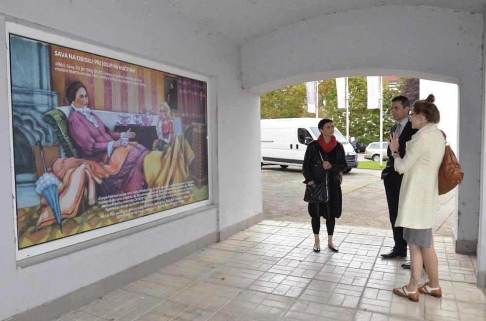 Tudi ulica CKŽ v starem mestnem jedru je bila ob dnevu brez avtomobila delno zaprta za motorni promet, saj so se odvijali različni dogodki. V izložbah objekta bivšega Baby centra so nadaljevali s projektom oživitve mestnega jedra, natančneje s projektom Stare izložbe – nove podobe, ki ga vodi enota Kulturnega doma Krško Mestni muzej Krško v sodelovanju s Tino Brinovar kot avtorico ilustracij. »Gre za koncept deklice Save kot povezovalnega lika, ki živi v muzeju, kjer najde žepno uro z letnicami namesto navadne številčnice. Ko Sava zavrti kazalce, jo ponese v čas, ki ga je nastavila na uri. Srečuje znane Krčane in se z njimi pogovarja, predstavijo ji svoj čas,« je pojasnila vodja projekta Nina Sotelšek.