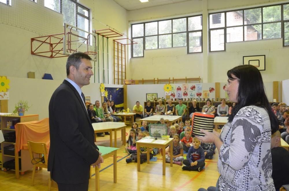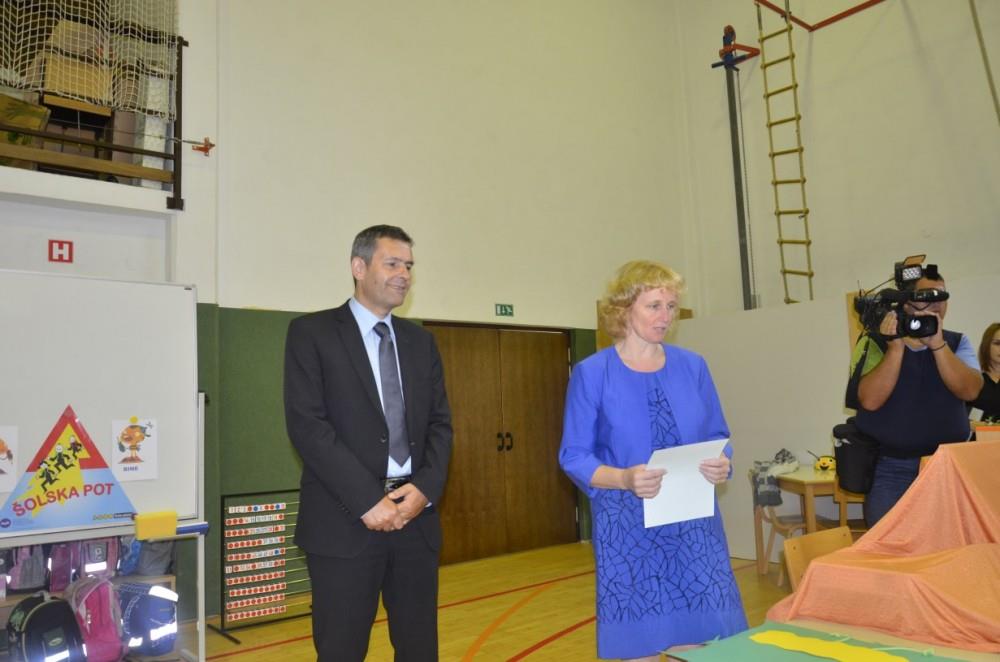 Veliko veselja in uspeha ob prvem srečanju s šolskimi klopmi je zaželel prvošolčkom in njihovim staršem na OŠ Adama Bohoriča v Brestanici, ki so zaradi podaljšanja energetske sanacije šole v šolske klopi sedli v telovadnici, kjer bodo ostali predvidoma še do konca oktobra.
