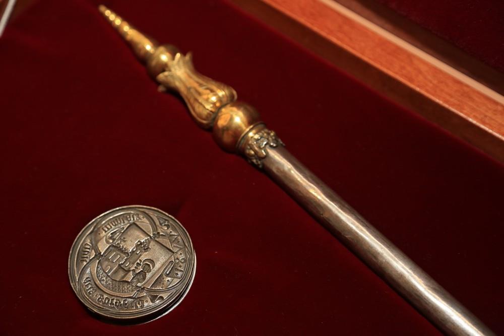 Skozi stoletja so mestno upravo v Krškem ves čas spremljale in označevale t.i. mestne insignije. Že leta 1477 je mesto dobilo mestni pečatnik, pomemben del mestne istovetnosti pa predstavlja sodniška palica iz leta 1628, ki ju hrani Posavski muzej Brežice in sta bila na seji tudi na ogled.