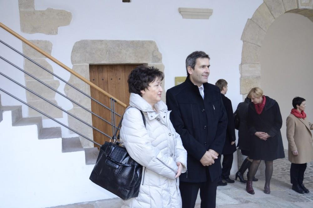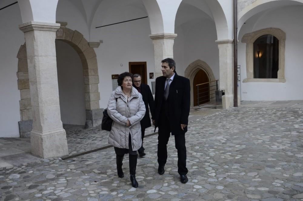 Potem ko je župan ministrico za kulturo seznanil s situacijo na področju obnove in delovanja posameznih kulturnih spomenikov v občini Krško, si je ministrica najprej ogledala obnovljen grad Rajhenburg, pri čemer je obnovo izpostavila kot zgled učinkovite obnove kulturne dediščine, da pa bo tudi s pomočjo ministrstva za kulturo potrebno v prihodnje postoriti še kaj, da bo grad v polni meri zaživel. Beseda je tekla tudi o zagotavljanju potrebnih parkirišč v okolici gradu.