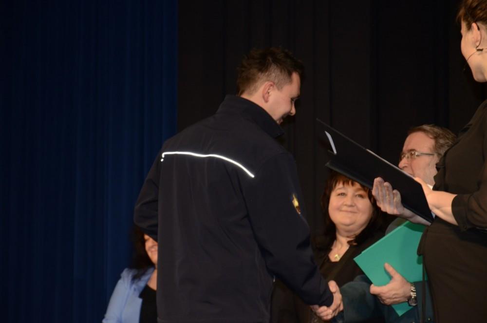 Visoko usposobljeni in psihofizično pripravljeni člani Poklicne gasilske enote Krško, ki je prejela priznanje za življenjsko delo, posebne zasluge in izjemne uspehe, svoje delo na vseh intervencijah opravljajo profesionalno na področju gasilske tehnike in taktike, posebej pa še na področju nudenja prve pomoči. Lani so nesebično pomagali ob pojavu žleda v Sloveniji ter ob katastrofalnih poplavah v Srbiji, ko so skupaj z ostalimi reševalci uspešno sodelovali pri reševanju v Obrenovcu.