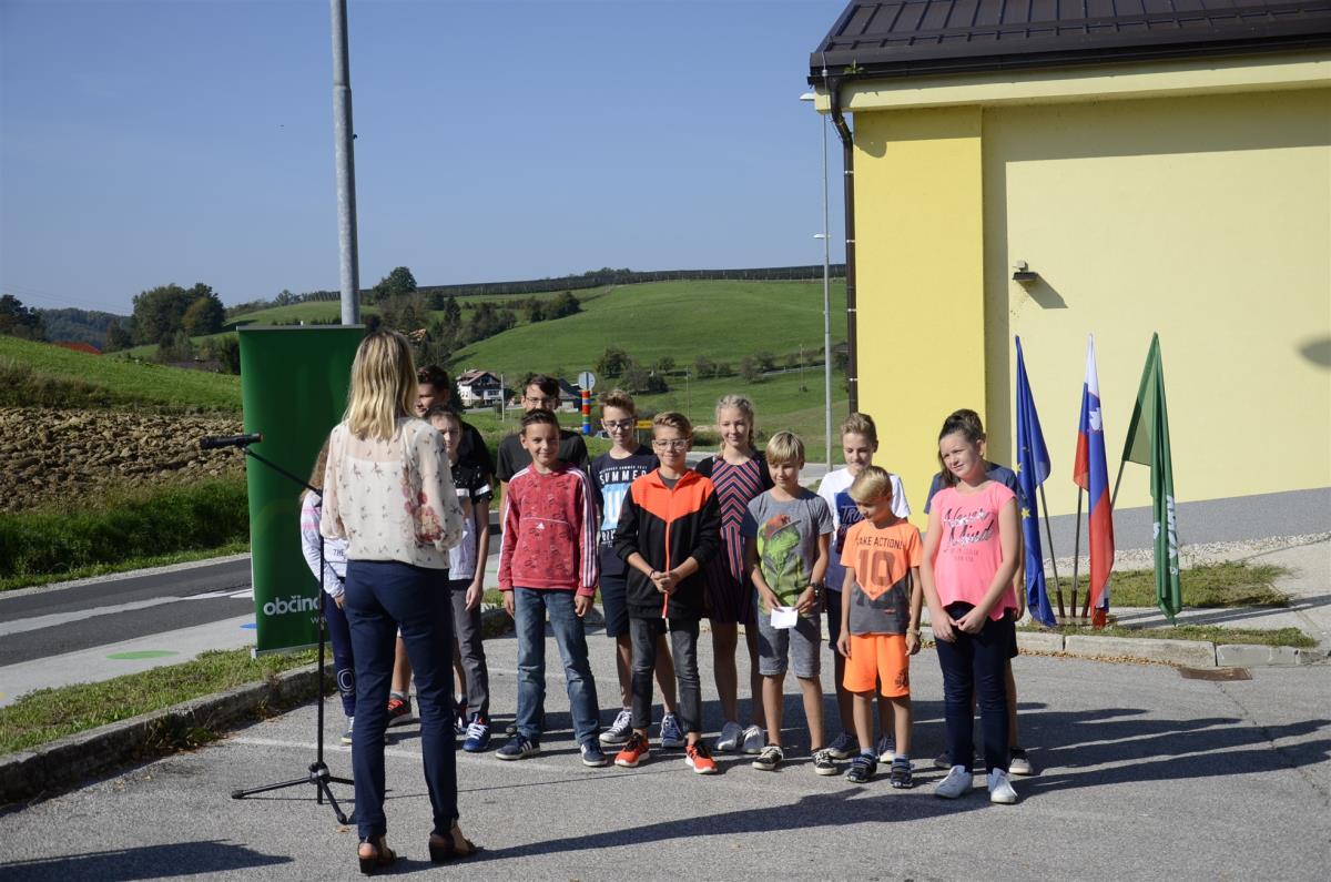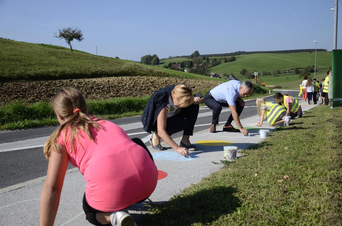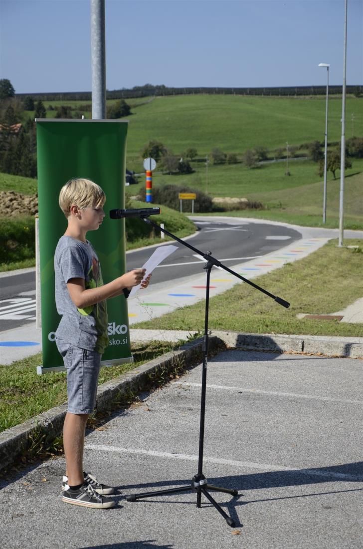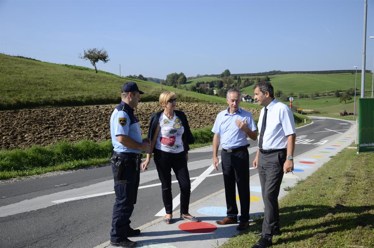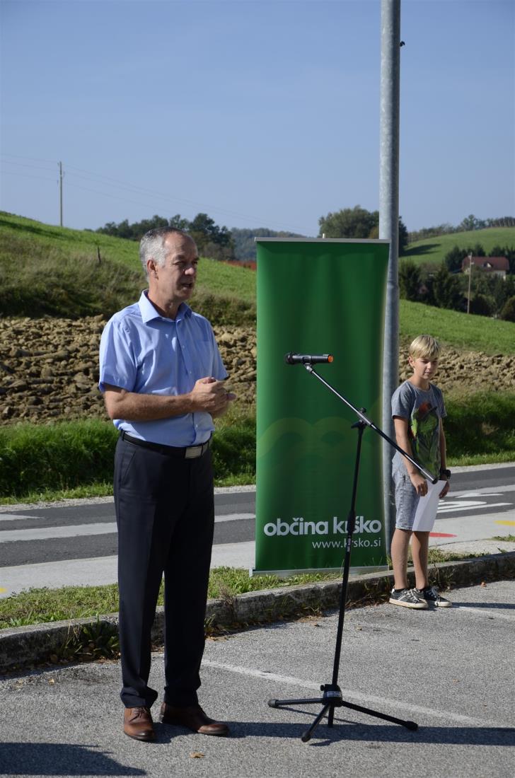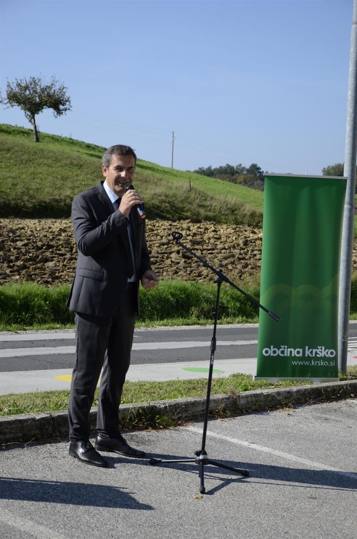 Koprivnica, Krško, 19. september 2018 – Na regionalni cesti Senovo – Podsreda ob osnovni šoli v Koprivnici so danes v okviru Evropskega tedna mobilnosti s krajšo slovesnostjo obeležili zaključek 1. faze ureditve cone umirjanja prometa v dolžini enega kilometra. Kot je ob tem poudaril župan občine Krško mag. Miran Stanko, je osnovni cilj umiriti (pre)hitre voznike na tem odseku za večjo varnost pešcev, predvsem otrok na poti v šolo in domov.