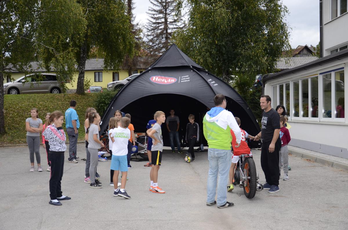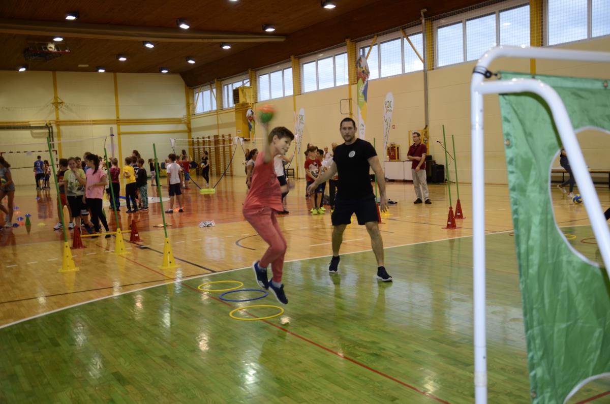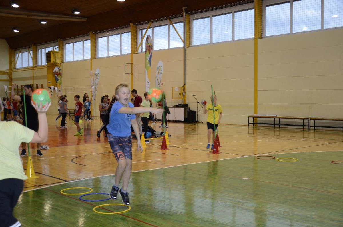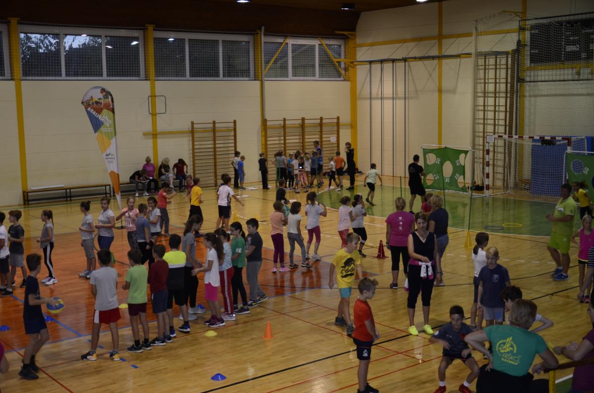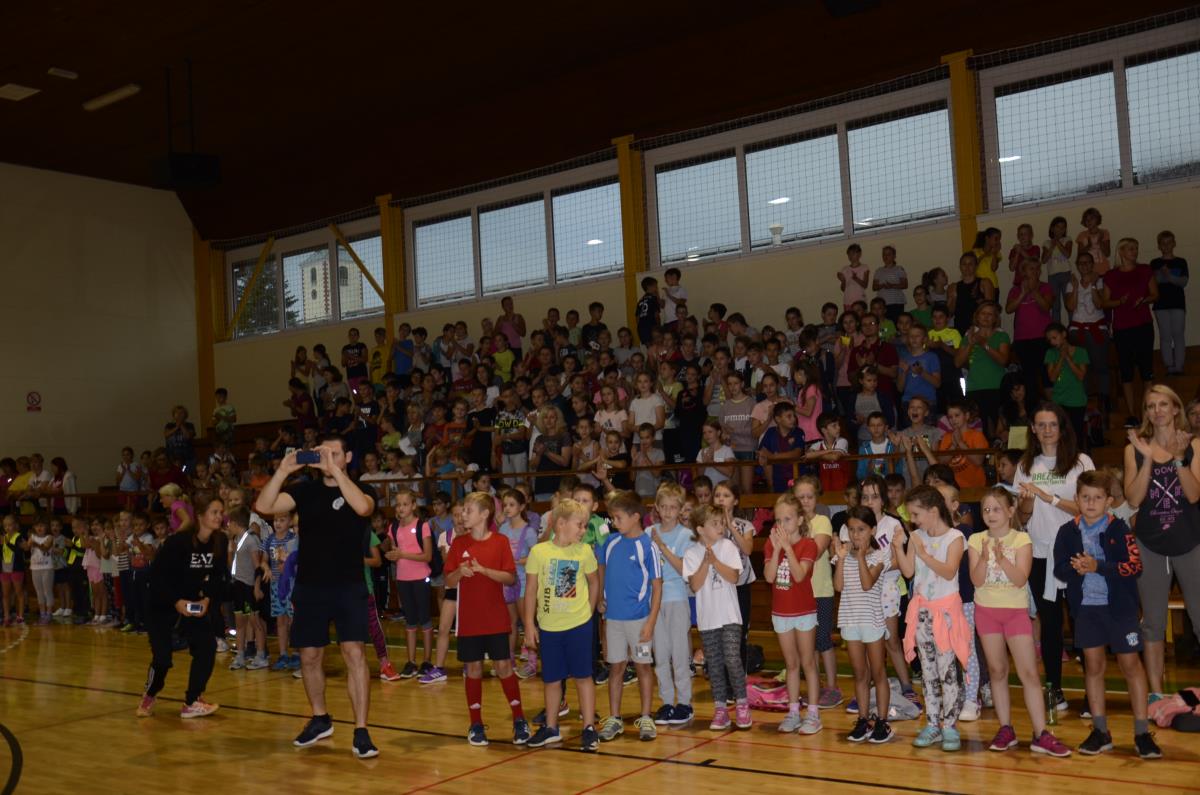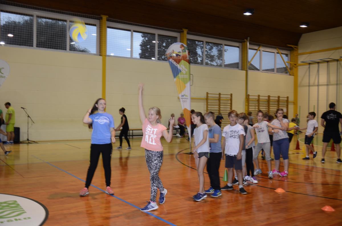 Krško, 24. september 2018 - Športna zveza Krško je v sodelovanju z OŠ Leskovec pri Krškem in Občino Krško tudi letos ob Evropskem tednu mobilnosti in Evropskem tednu športa na OŠ Leskovec pri Krškem organizirala Športofešto, na kateri so skozi predstavitve lokalnih športnih društev, ki otrokom nudijo raznolike športne programe, sicer deževen dan obarvali z gibanjem, začeli pa so ga s pravo Mini olimpijado.