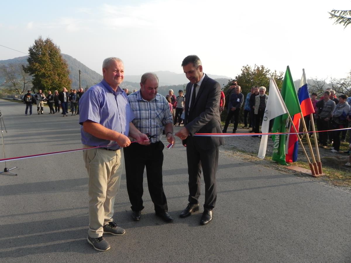 Krško, 22. oktober 2018 – Župan občine Krško mag. Miran Stanko, predsednik sveta KS Senovo Vlado Grahovac in predstavnik vasi Šedem v svetu KS Senovo Ladislav Cerjak so v soboto popoldan slovesno namenu predali obnovljen odsek ceste Šedem – Dovško v dolžini nekaj manj kot dva kilometra. Gre za večletni projekt Občine Krško in Krajevne skupnosti Senovo v skupni vrednosti okoli 300. 000 evrov.
