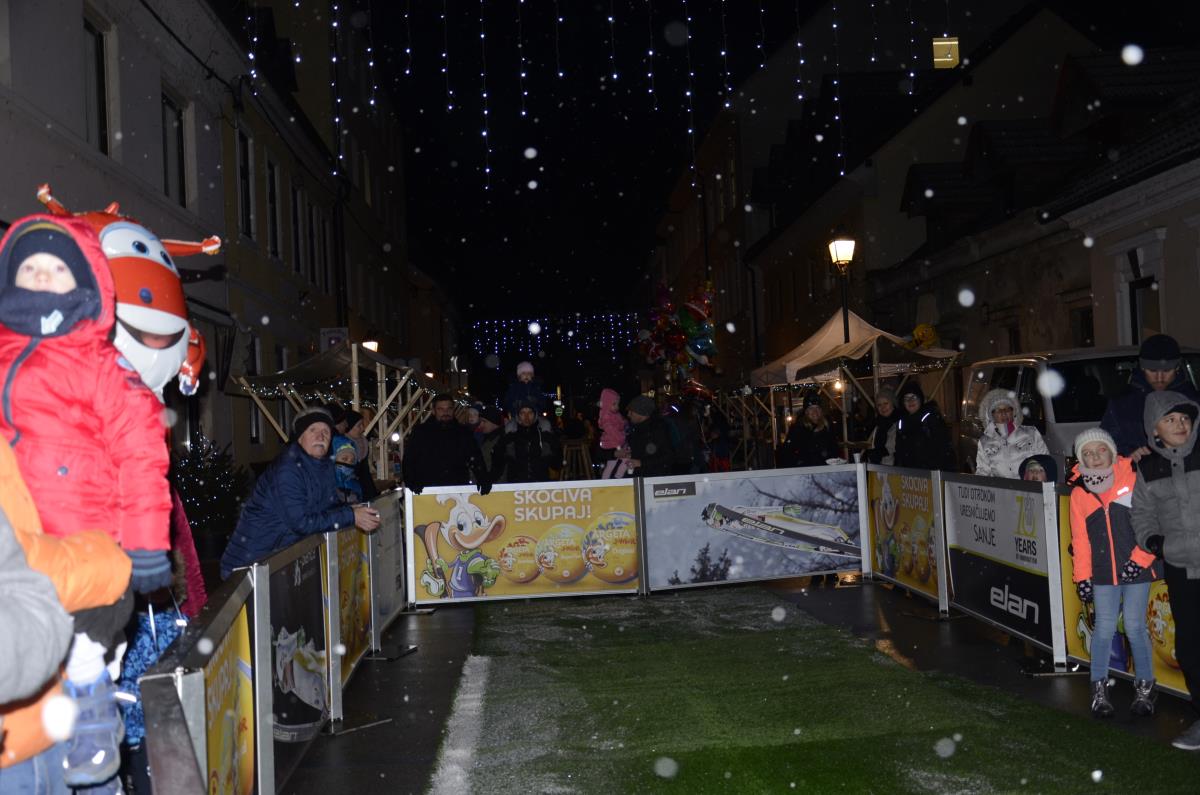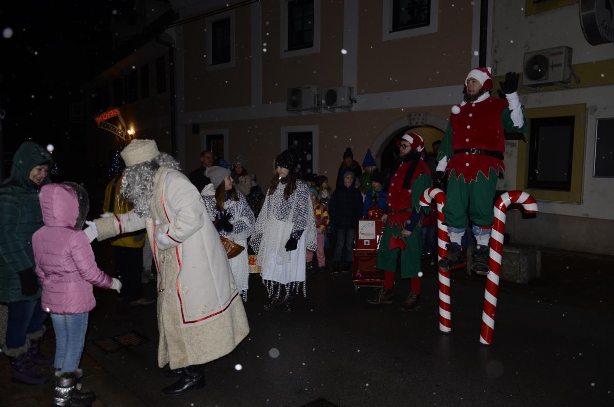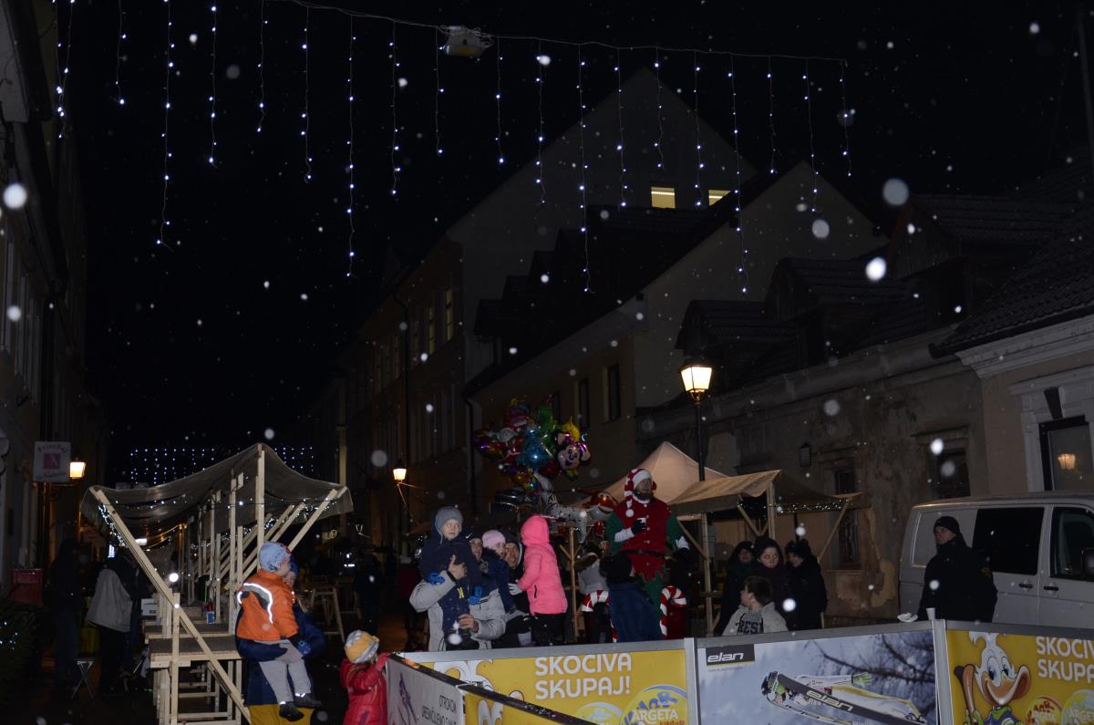 Krško, 14. december 2018 - Danes popoldan je v staro mestno jedro prišel dedek Mraz s spremstvom, ki se je skupaj z otroki in škratoma iz Teatra Cizamo sprehodil po okrašenih ulicah starega mestnega jedra. Zabava se je nadaljevala z Andrejo Zupančič, na ulici pajeo na otroke čakal poni in Mini Planica – prava skakalnica, namenjena otrokom med 6. in 12. letom, ter poslikave obraza Mini kraljestvo. Starši so se lahko medtem sprehodili po prazničnem sejmu lokalnih rokodelcev, ki so ponujali različna praznična darilca.