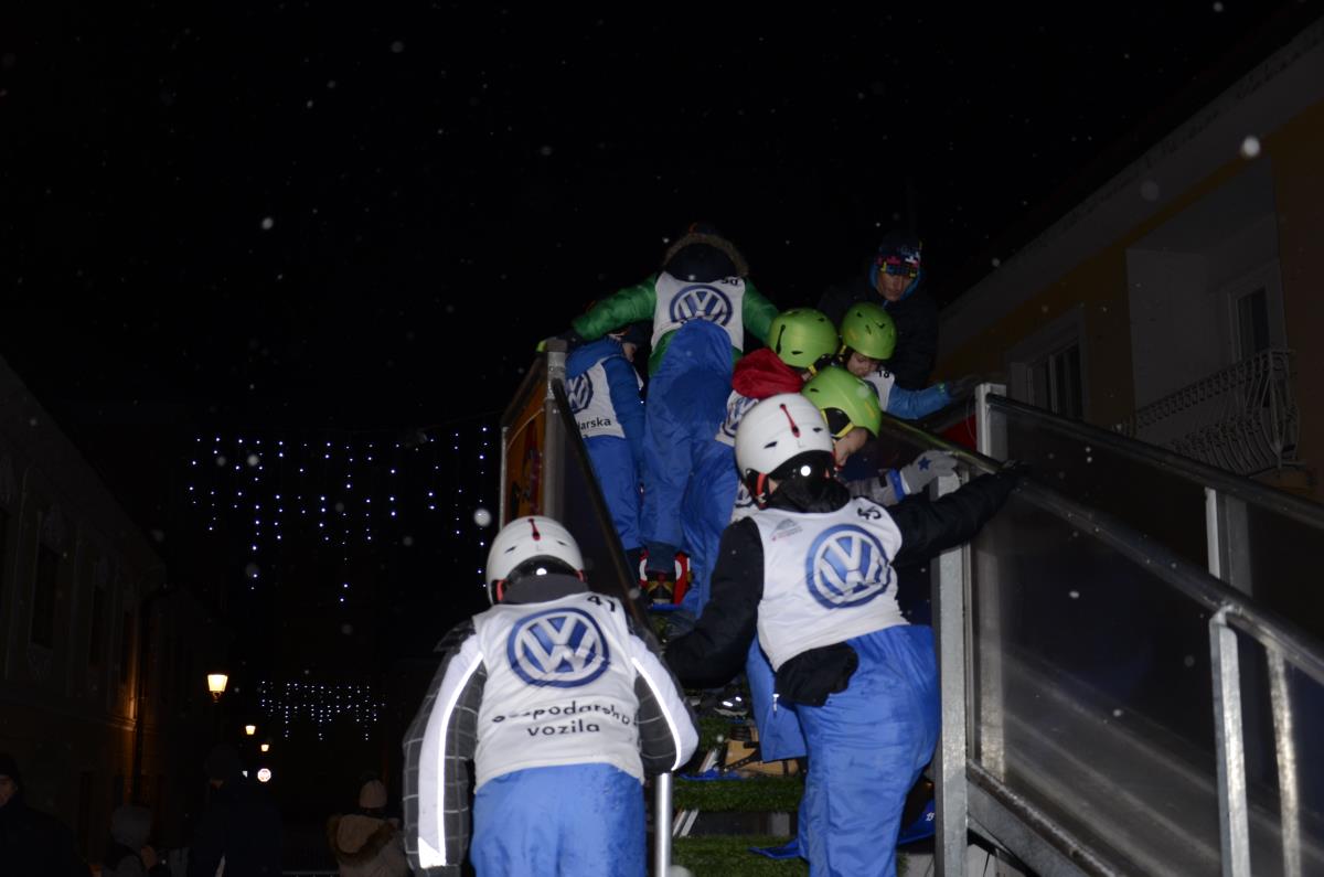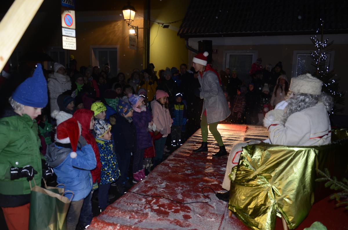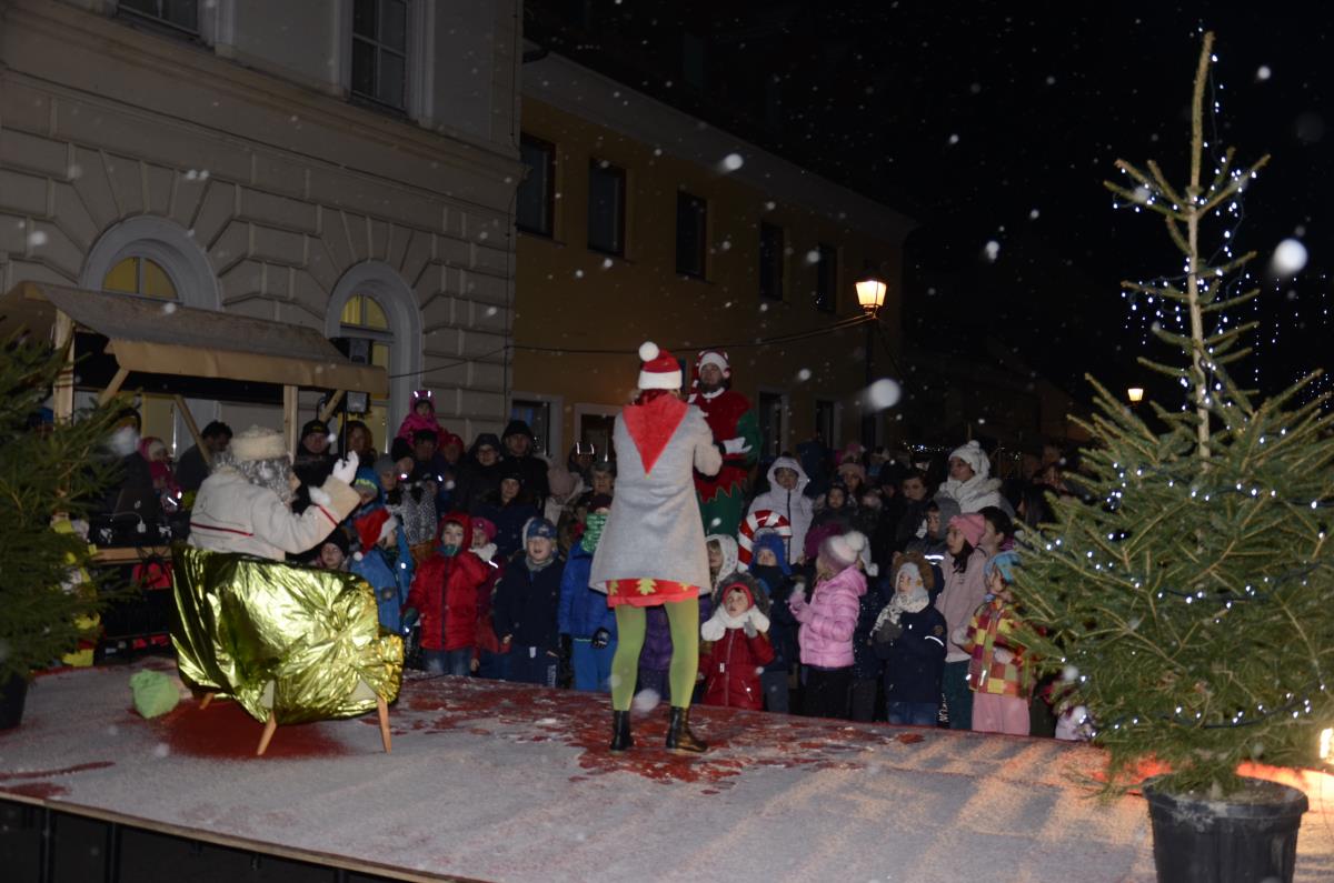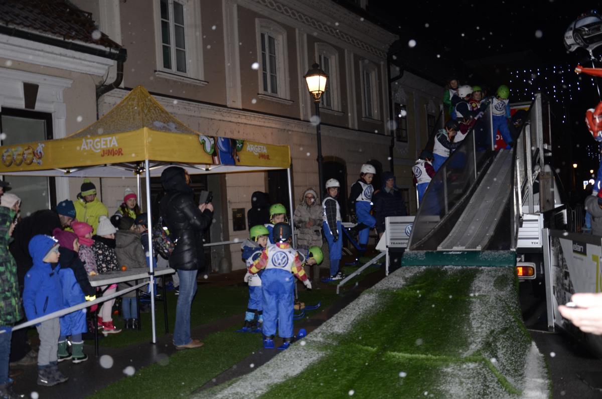 Krško, 14. december 2018 - Danes popoldan je v staro mestno jedro prišel dedek Mraz s spremstvom, ki se je skupaj z otroki in škratoma iz Teatra Cizamo sprehodil po okrašenih ulicah starega mestnega jedra. Zabava se je nadaljevala z Andrejo Zupančič, na ulici pajeo na otroke čakal poni in Mini Planica – prava skakalnica, namenjena otrokom med 6. in 12. letom, ter poslikave obraza Mini kraljestvo. Starši so se lahko medtem sprehodili po prazničnem sejmu lokalnih rokodelcev, ki so ponujali različna praznična darilca.