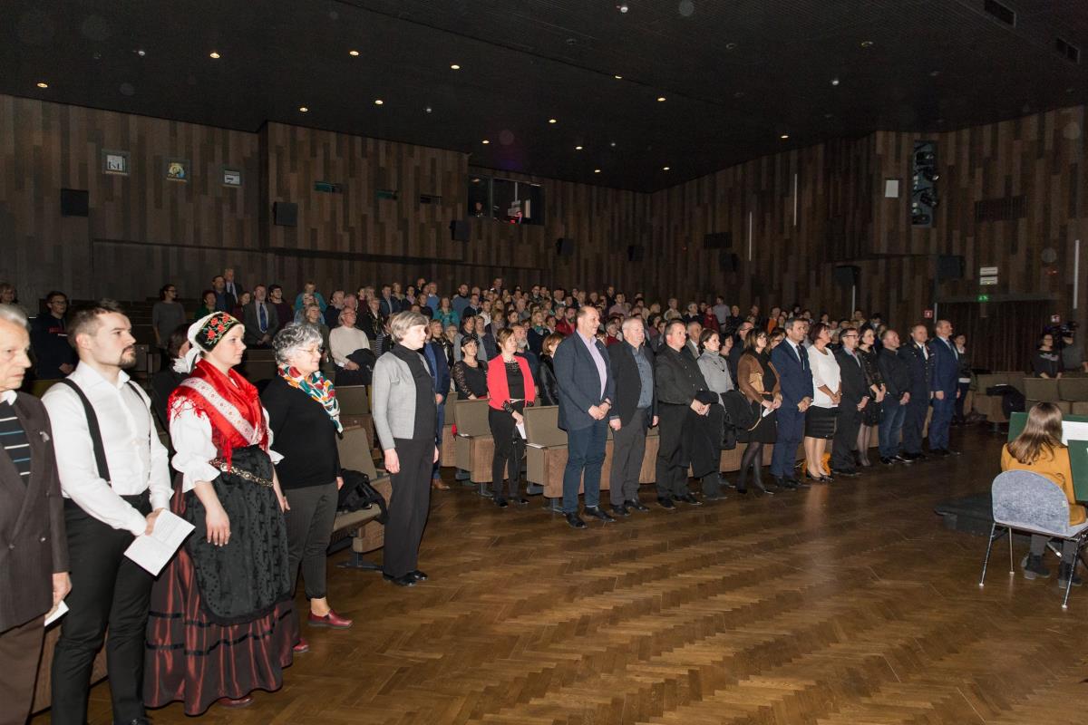 Krško, 8. februar 2019 – Za predano delo in izredne uspehe na področju ljubiteljske kulture so župan občine Krško mag. Miran Stanko, predsednik Zveze kulturnih društev (ZKD) Krško Uroš Brezovšek in vodja Javnega sklada za kulturne dejavnosti, območne izpostave Krško Tinka Vukič sinoči na osrednji slovesnosti ob kulturnem prazniku v Kulturnem domu Krško domačim ustvarjalcem podelili Prešernove plakete in priznanja.