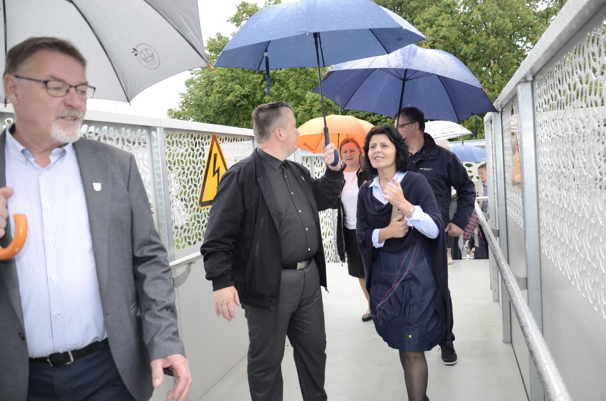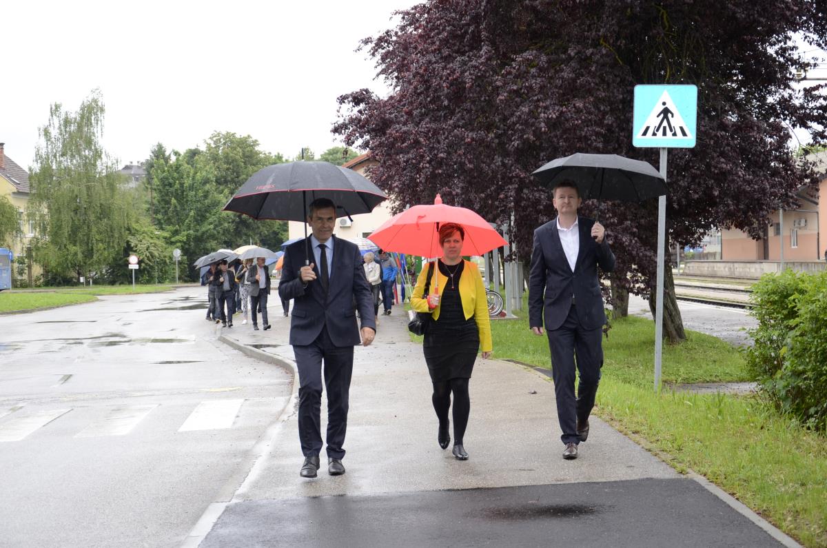 Krško, 27. maj 2019 – Župan občine Krško mag. Miran Stanko, direktor družbe Slovenske železnice - Infrastruktura Matjaž Kranjc in predsednica KS mesta Krško mag. Nataša Šerbec so danes slovesno s prerezom traku namenu predali nov nadhod nad železniško progo v Krškem, za katerega je Občina Krško namenila nekaj več kot 180.000 evrov.