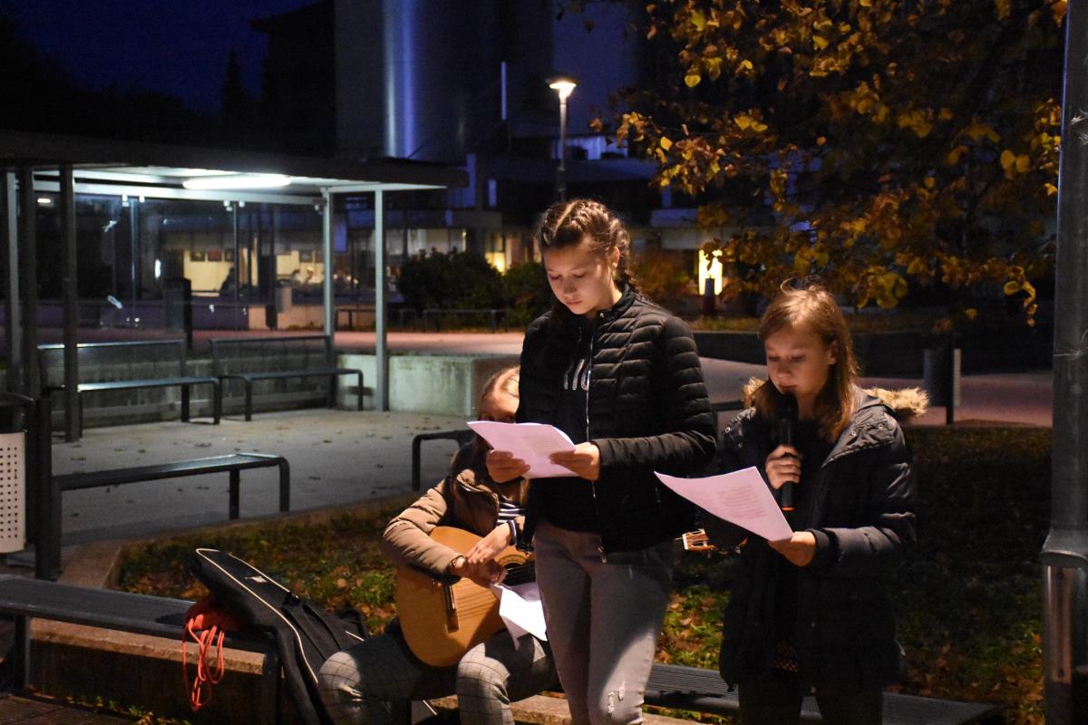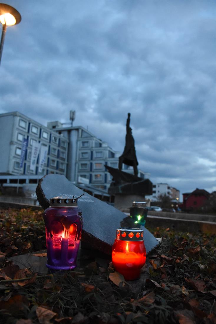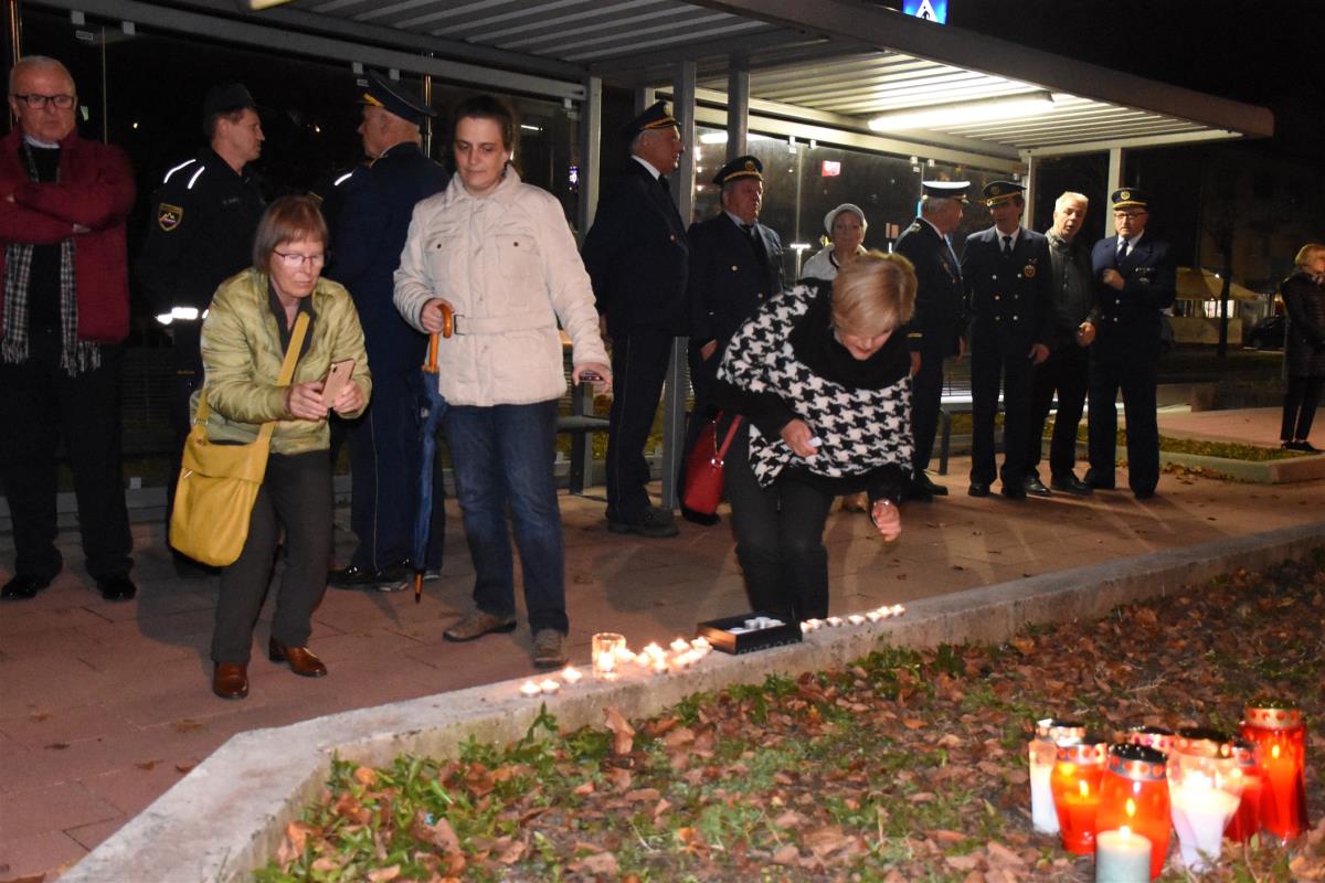 Ob zaključku slovesnosti, na kateri so kulturni program prispevale učenke OŠ Jurija Dalmatina Krško, so ob obeležju, na katerem je Marko Kranjc brezplačno obnovil napis, prižgali sveče.