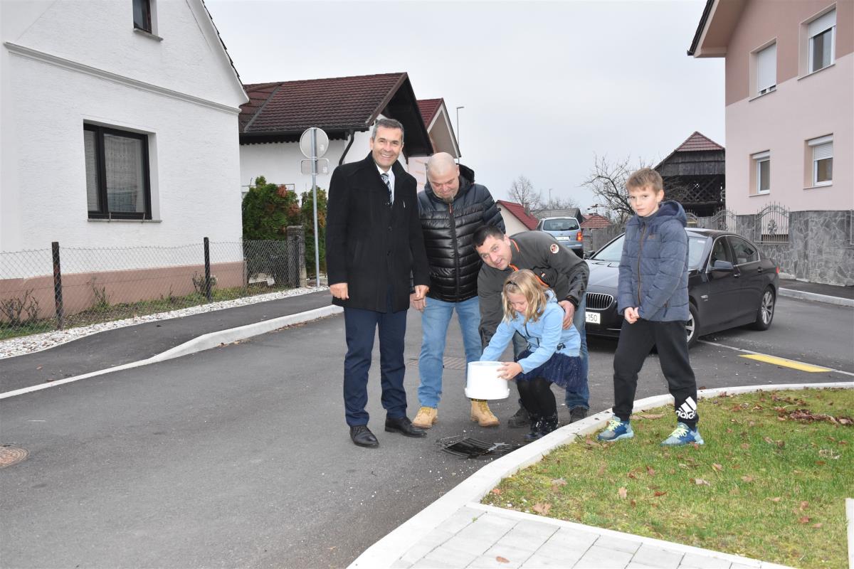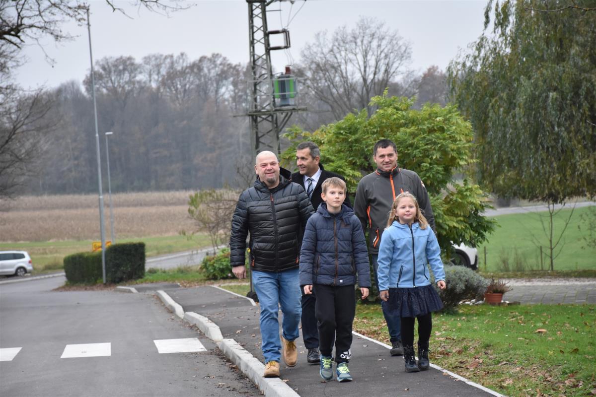 Krško, Gorica, 26. november 2019 – Župan občine Krško mag. Miran Stanko, predstavnika Gorice in Jelš ter učenka in učenec iz podloške podružnične šole so včeraj popoldan simbolično namenu predali novo komunalno infrastrukturo v naseljih Gorica in Jelše v krajevni skupnosti Veliki Podlog.