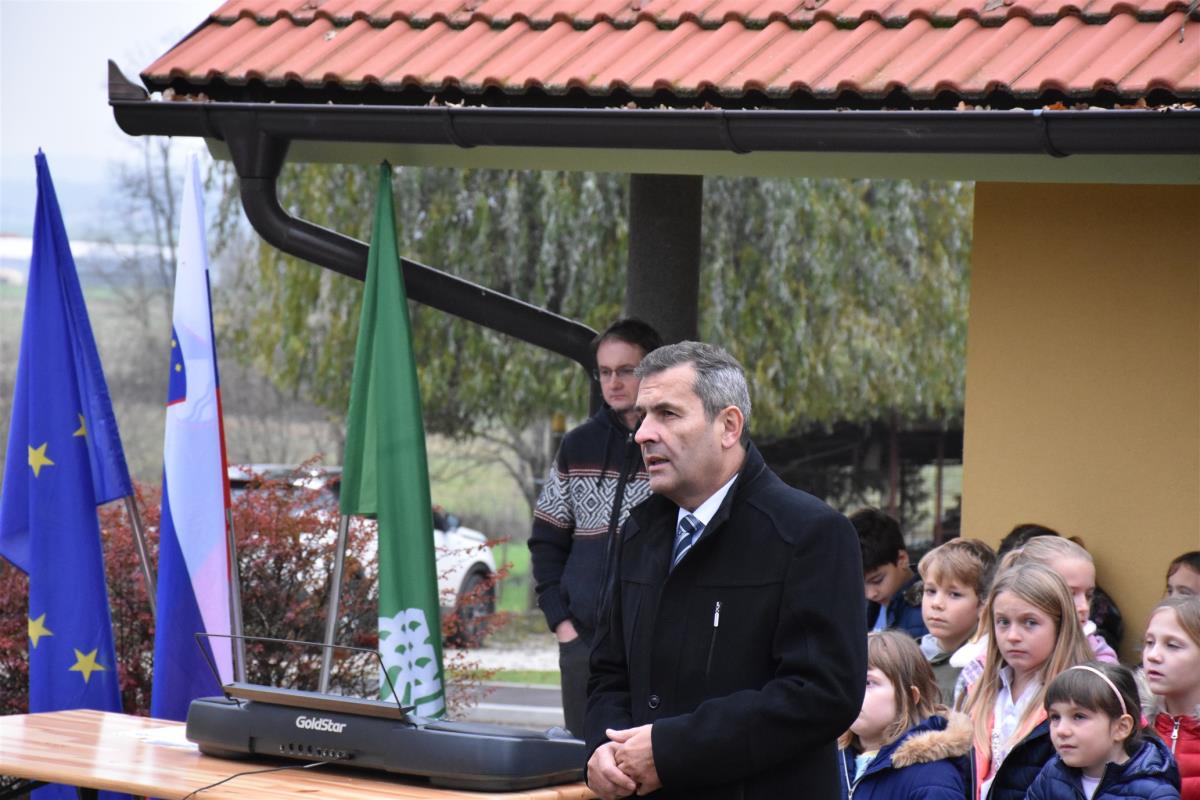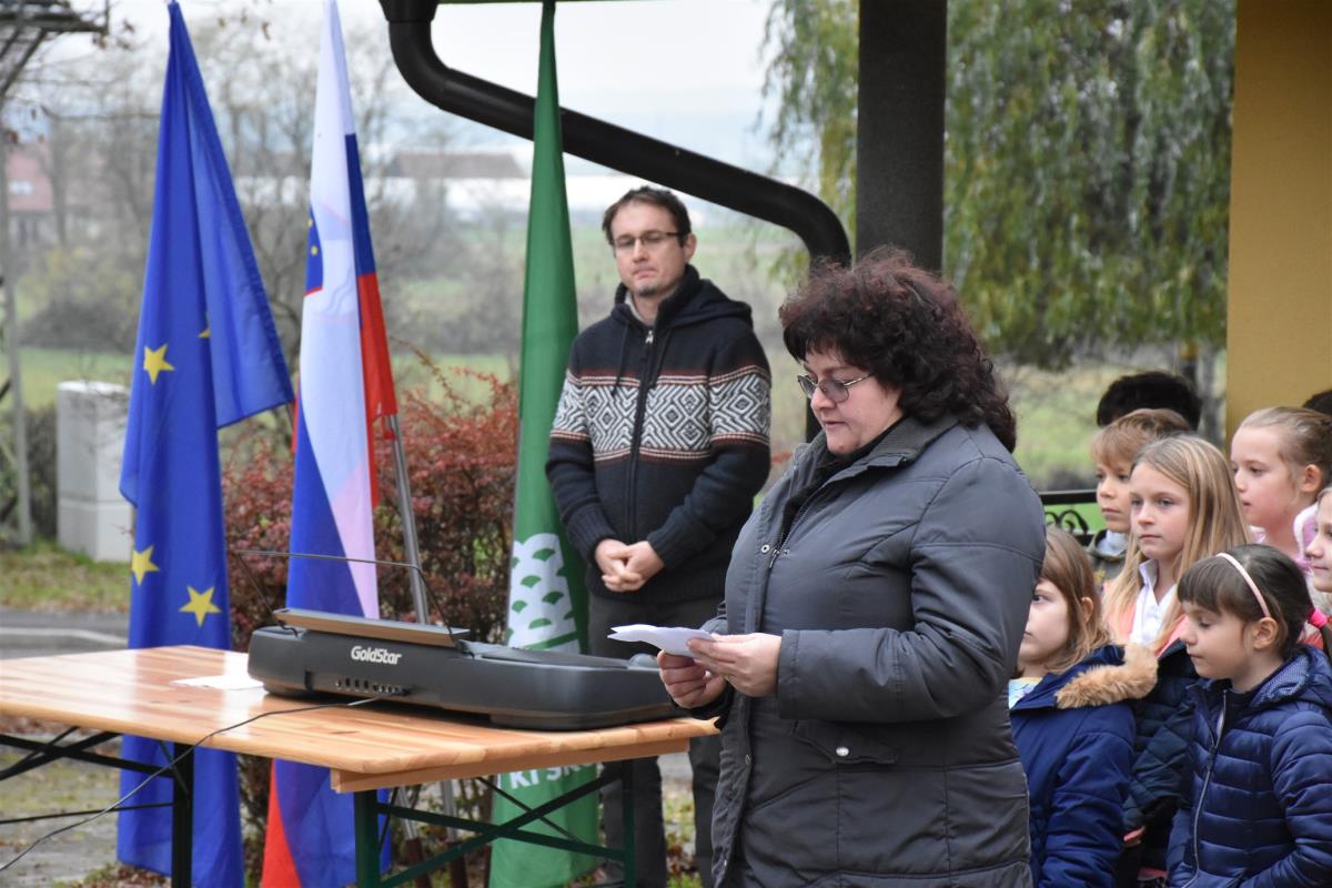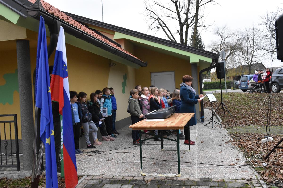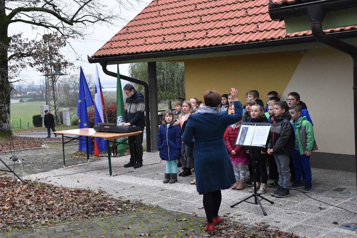 Krajšo slovesnost na Gorici, ki jo je povezovala Mirjana Marinčič, so s pesmijo pospremili učenci podružnične osnovne šole Veliki Podlog.