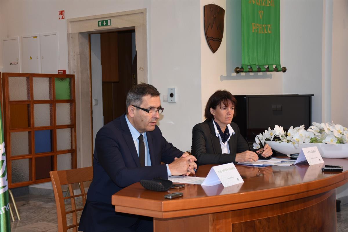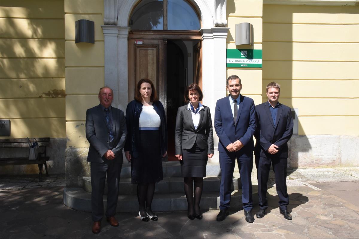 Krško, 3. junij 2020 – Ob prazniku občine Krško, posvečenem spominu na prve padle krške borce in vrnitvi izgnancev, sta župan občine Krško mag. Miran Stanko in direktorica občinske uprave Melita Čopar na današnji novinarski konferenci predstavila zaključene naložbe in aktualne projekte v občini. Ob tem je župan z direktorjem podjetja GPI tehnika Novo mesto Dragom Muhičem podpisal pogodbo za izgradnjo prizidka Valvasorjeve knjižnice Krško.