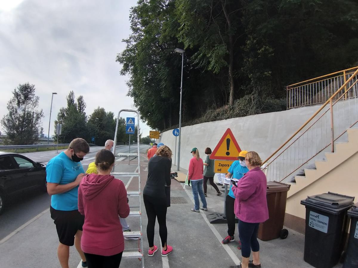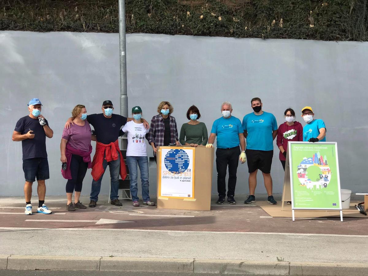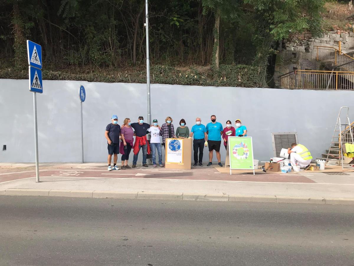 Krško, 21. september 2020 – Ob dnevu za spremembe in Evropskem tednu mobilnosti so direktorica občinske uprave Melita Čopar in vodje oddelkov občinske uprave skupaj s predsednikom Zveze prijateljev mladine Krško Vinkom Hostarjem in prostovoljci v soboto dopoldan prebarvali zid v Zatonu.