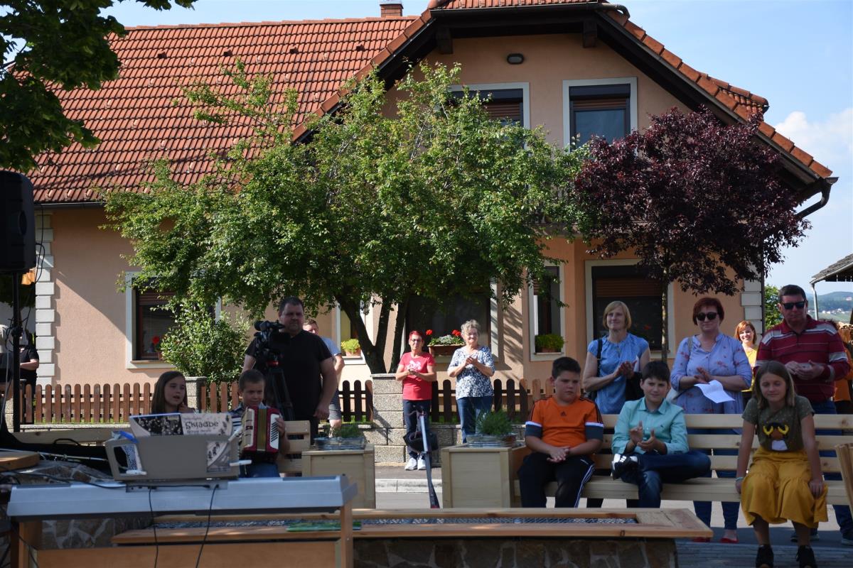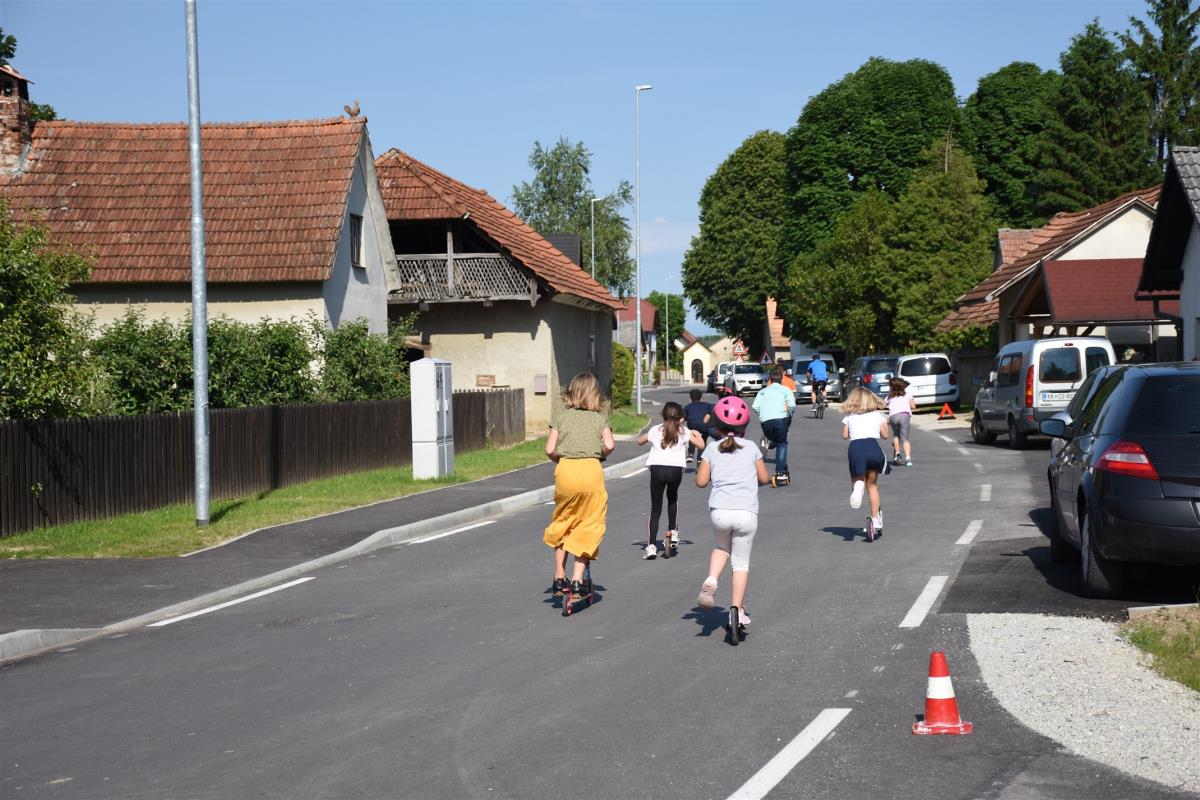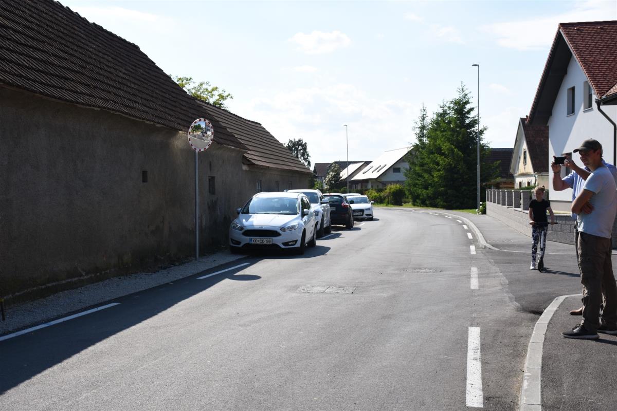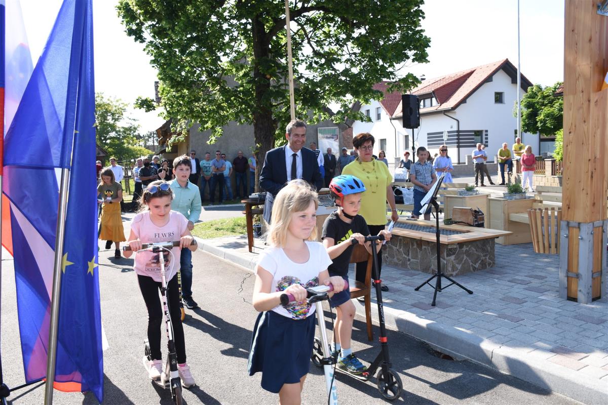 Otroci so se simbolično zapeljali po novo urejeni cesti skozi naselje, s čimer je bila novo pridobitev tudi uradno predana namenu, domačina Andreja Zidarič in Zdravko Mežič pa sta še simbolno otvorila obnovljen vaški vodnjak.