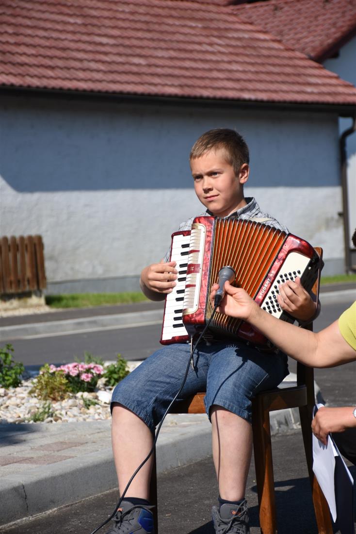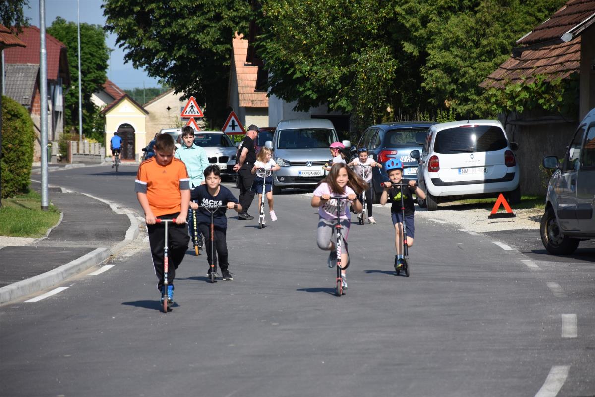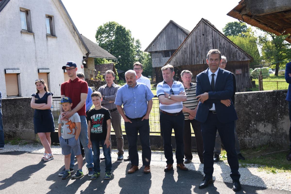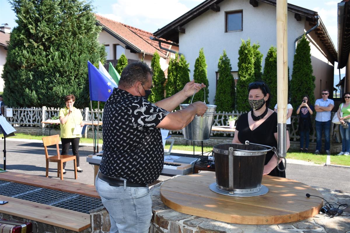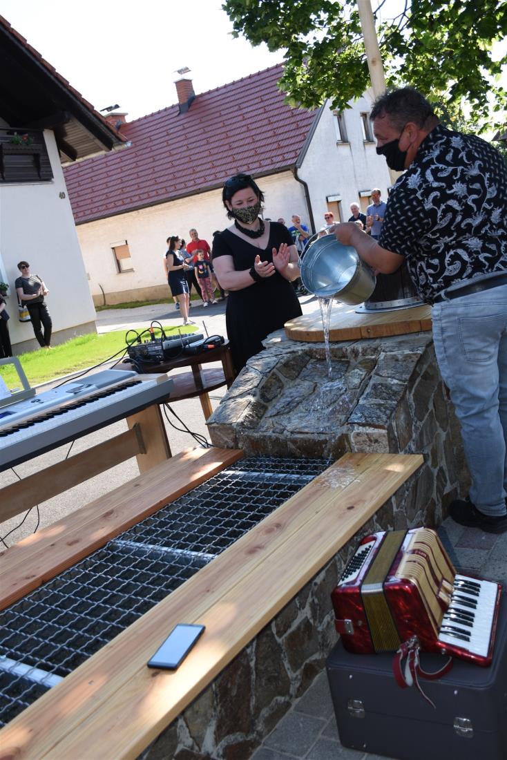 Otroci so se simbolično zapeljali po novo urejeni cesti skozi naselje, s čimer je bila novo pridobitev tudi uradno predana namenu, domačina Andreja Zidarič in Zdravko Mežič pa sta še simbolno otvorila obnovljen vaški vodnjak.