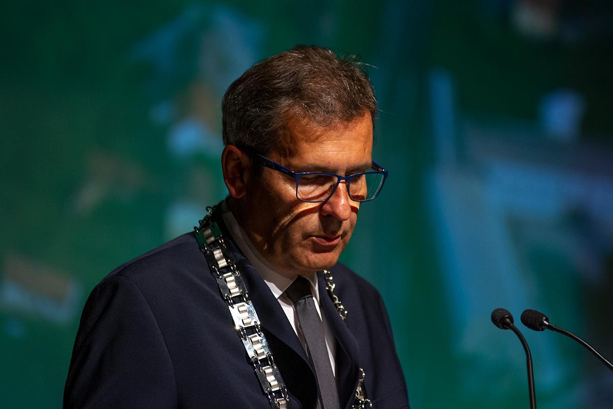 Župan mag. Miran Stanko se je v svojem nagovoru ozrl desetletje nazaj. Ob tem je poudaril: »Zadnje desetletje ocenjujem kot dobro osnovo in trden temelj za nadaljnji napredek občine, saj nam izzivov ne zmanjka. A medtem ko uresničujemo kratkoročne cilje, vseskozi razmišljamo desetletja naprej. Pred nami je novo prelomno obdobje za našo lokalno skupnost, ki ga bo gotovo generirala gradnja drugega bloka jedrske elektrarne. Kot naložba nacionalnega pomena bo za Krško predstavljala nov ključen korak k nadaljnjemu razvoju.« Ob 30-letnici države je dejal, da smo lahko ponosni, da imamo svojo državo, a se premalo zavedamo dejstva, da smo le mi sami odgovorni za to, kakšna bo prihodnjih trideset let. Ob koncu je poudaril: »Najuspešnejše skupnosti odlikuje dobra ekipa, ki deluje homogeno in na katero se lahko vedno zaneseš. Verjamem, da bo občina Krško, ki premore ljudi velikih src z znanjem, izkušnjami in pogumom, v prihodnjih letih postala mestna občina in močen center Posavja. In upam, da bo Posavje postalo še pomembnejši akter v državi.«