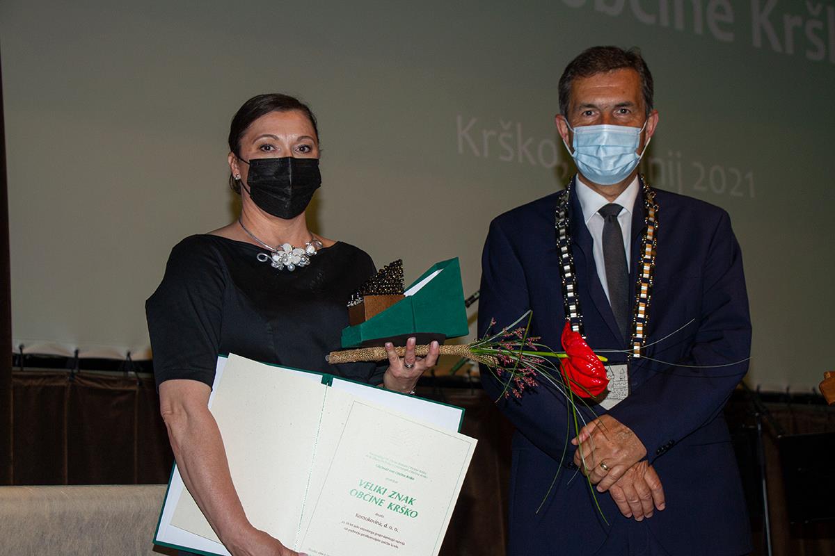 Krško, 8. junij 2021 – Na včerajšnji slavnostni seji Občinskega sveta Občine Krško v počastitev praznika občine Krško v Kulturnem domu Krško je župan občine Krško mag. Miran Stanko podelil letošnje nagrade in priznanja za ustvarjalno delo, posebne uspehe in pomemben prispevek k razvoju lokalne skupnosti. Veliki znak je prejela družba Kemokovina, znak Mirjana Marinčič, Branko Strgar in Jože Kodela, priznanje pa Helena Španovič. Slavnostni govorec generalmajor (v pokoju) Ladislav Lipič, predsednik Zveze veteranov za Slovenijo je ob 30-letnici samostojne države poudaril, da je danes čas za proslavljanje, čas za veselje in tudi čas za razmislek, kaj smo dosegli in predvsem kako naprej v prihodnost.