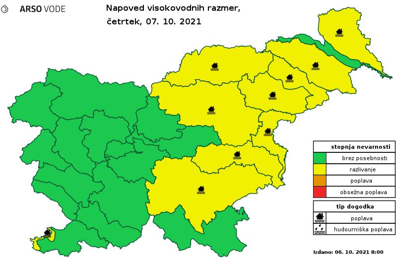 Krško, 6. oktober 2021 – Kot sporočajo z Agencije RS za okolje, bodo danes popoldan in v noči na četrtek reke v večjem delu države pričele zmerno naraščati. V četrtek se bo naraščanje rek nadaljevalo. V večjem delu države bodo reke narasle do srednjih pretokov, najbolj pa bodo narasle reke v južni, jugovzhodni in vzhodni Sloveniji, kjer bodo posamezne reke dosegle velike pretoke.