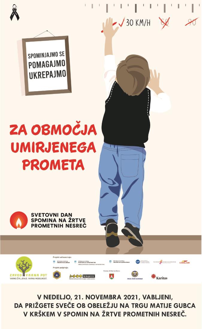 Krško, 18. november 2021 – V Krškem tretjo nedeljo v novembru tradicionalno obeležujemo Svetovni dan spomina na žrtve prometnih nesreč. Gre za dan, ko se spomnimo vseh umrlih in poškodovanih v prometnih nesrečah, skupaj z njihovimi bližnjimi, prijatelji, sodelavci in znanci. Občina Krško v sodelovanju s Svetom za preventivo in vzgojo v cestnem prometu Občine Krško vabi vse, da to nedeljo, 21. novembra, pri obeležju na Trgu Matije Gubca prižgejo svečo v spomin na vse žrtve prometnih nesreč, hkrati pa v opomin vsem voznikom, da smo v avtomobilu bolj previdni, pozorni, manj hitri in strpni. Slovesnosti, kot so bile organizirane v preteklih letih, zaradi epidemičnih razmer žal ne bo.