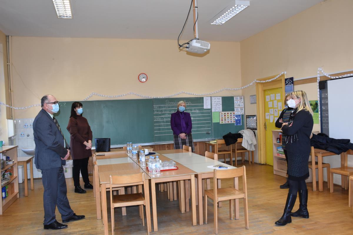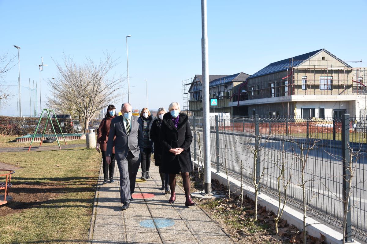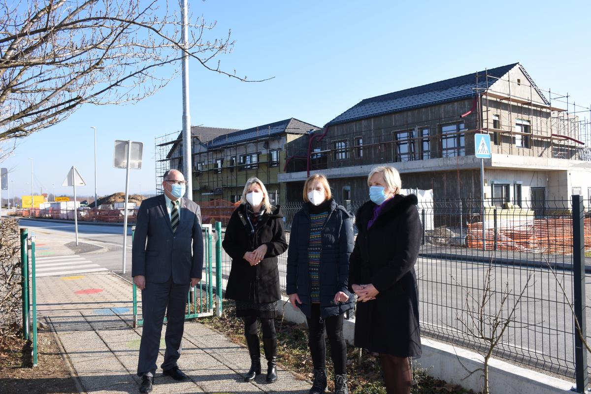Krško, Veliki Podlog, 25. januar 2022 – V okviru obiska Vlade Republike Slovenije v Posavju si je državni sekretar na ministrstvu za izobraževanje, znanost in šport Marjan Dolinšek danes skupaj s podžupanjo Mestne občine Krško Ano Somrak ter ravnateljico OŠ Leskovec pri Krškem Jožico Repše in vodjo podružnične osnovne šole Ano Netahly ogledal obstoječ objekt in gradnjo nove podružnične osnovne šole in vrtca v Velikem Podlogu.