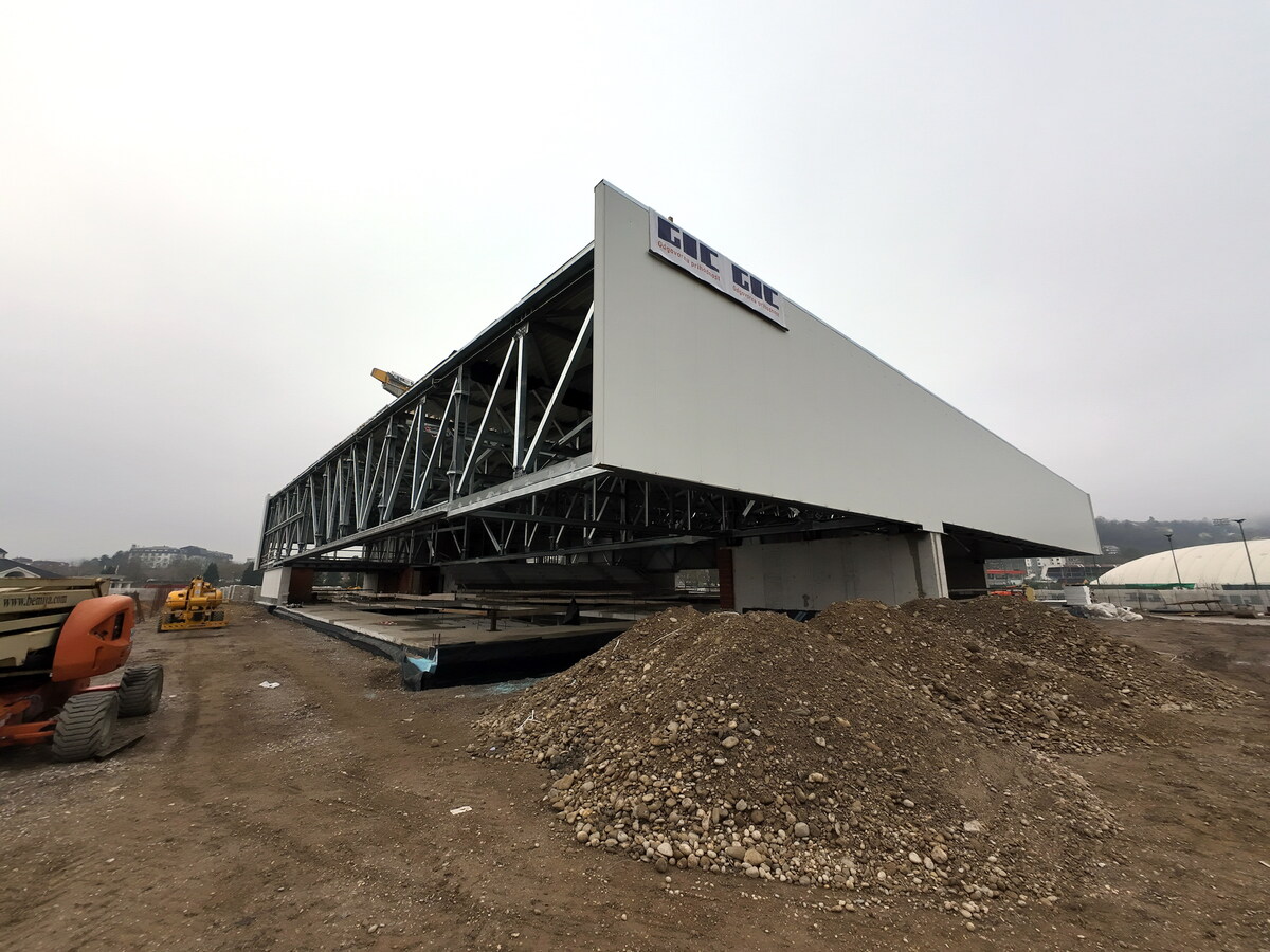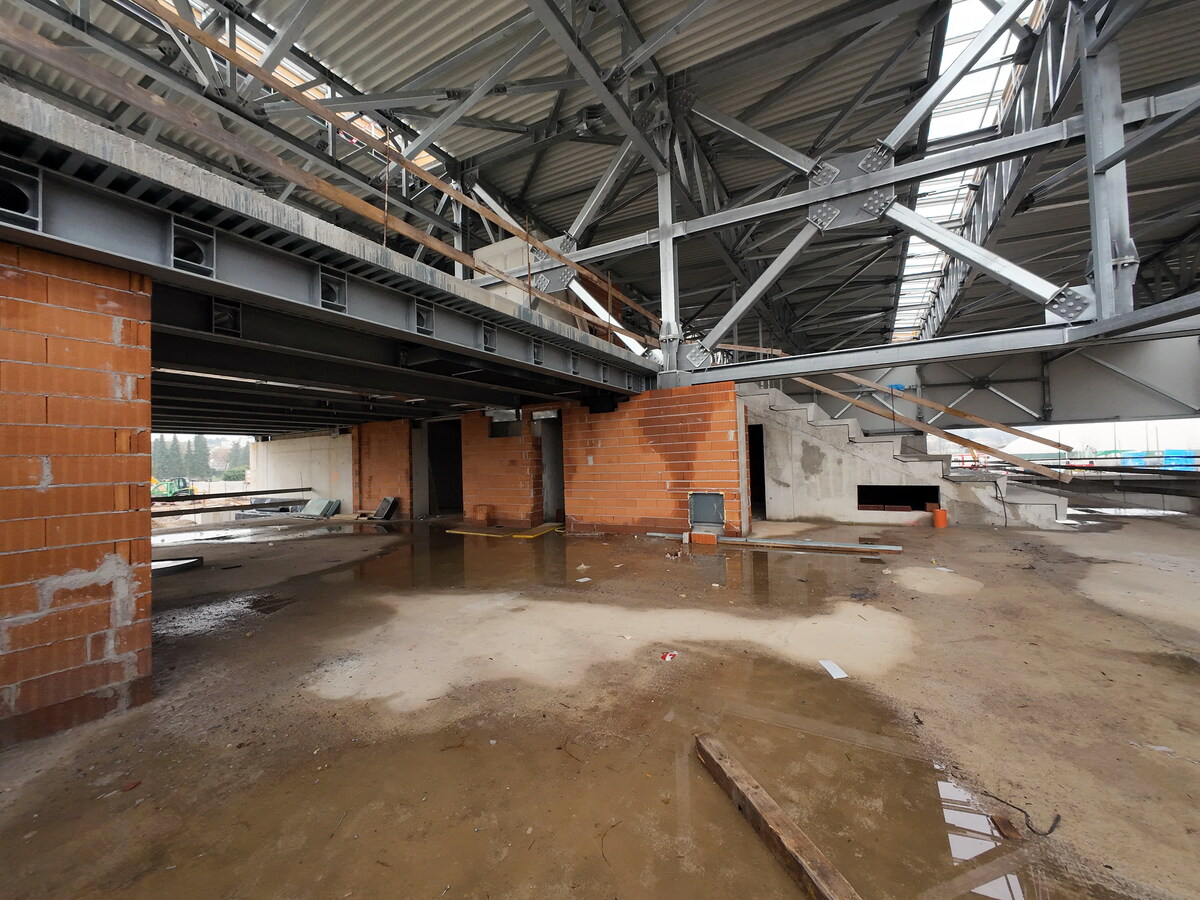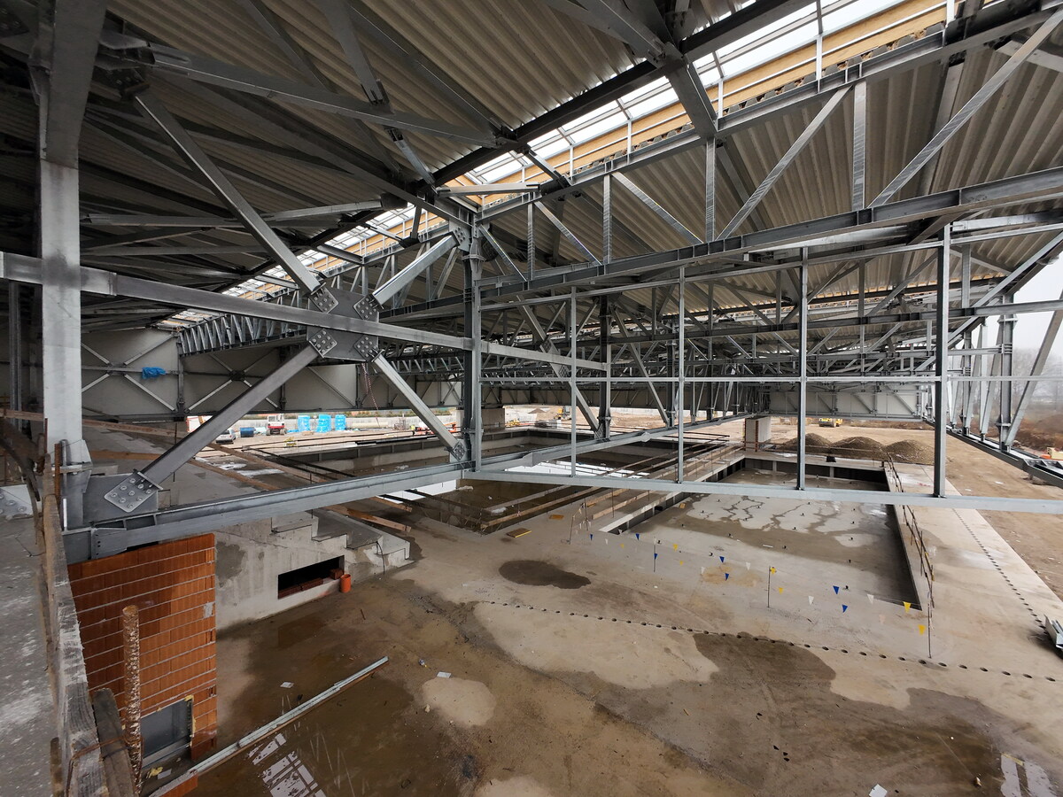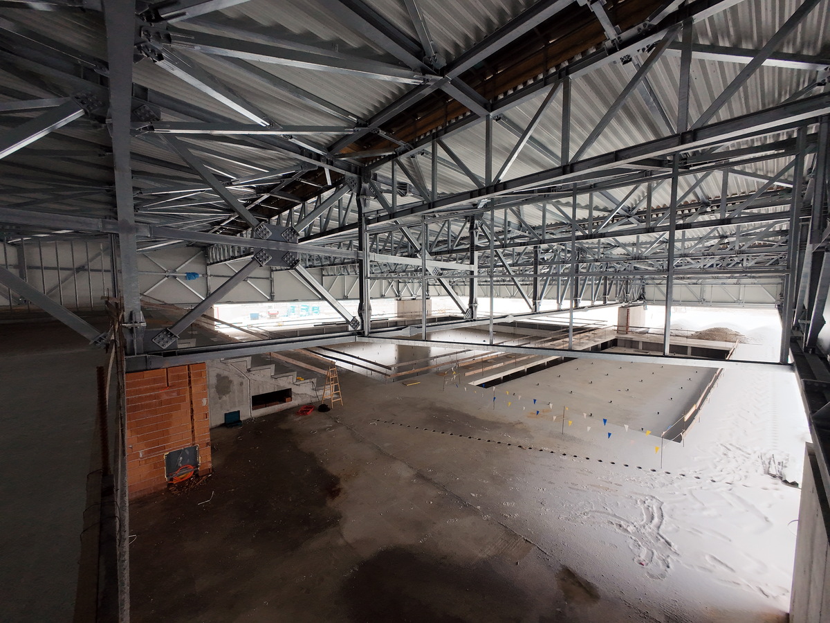 V avgustu so na gradbišču potekala predvsem betonska dela, hkrati pa se je v delavnici izdelovala jeklena konstrukcija za streho.