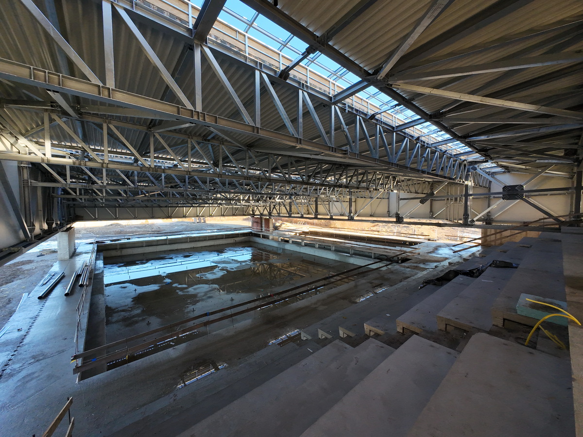 V mesecu oktobru zidarska in betonska dela na Bazenu Krško prehajajo v zaključno fazo, hkrati pa so se intenzivno pričela izvajati ostala obrtniška dela. Sestavlja se kovinska konstrukcija za streho, vzporedno pa potekajo strojno inštalacijska (vgradnja prezračevalnih kanalov) ter elektro inštalacijska dela. V izdelavi je bazenska školjka, prav tako pa se že vgrajuje določena bazenska tehnologija, potrebna za delovanje bazena (predinštalacije in oprema).