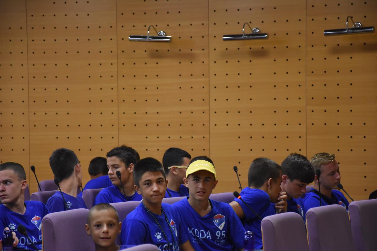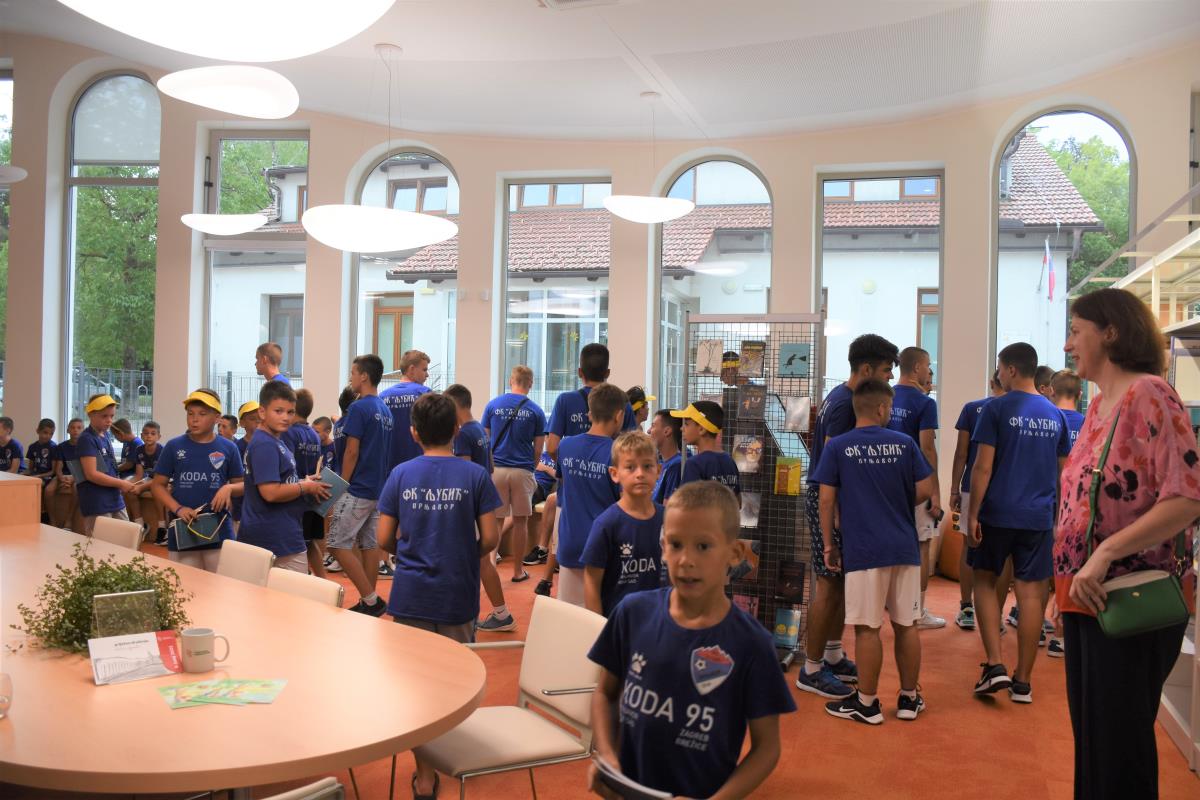 Krško, 27. julij 2022 – Župan Mestne občine Krško mag. Miran Stanko je sprejel in nagovoril 85 otrok in 12 spremljevalcev iz občine Prnjavor iz Bosne in Hercegovine, ki so bili v času 5-dnevnih nogometnih priprav nastanjeni v Krškem. Poleg njih se je obiska občine udeležil tudi župan Darko Tomaš s sodelavci ter predstavnika podjetja Koda 95, ki je z denarno pomočjo omogočilo priprave mladih nogometašev nogometnega kluba Ljubić Prnjavor v Sloveniji. V sklopu obiska so mladi nogometaši obiskali tudi novo Valvasorjevo knjižnico v Krškem, kjer jih je sprejela direktorica Urška Lobnikar Paunović.