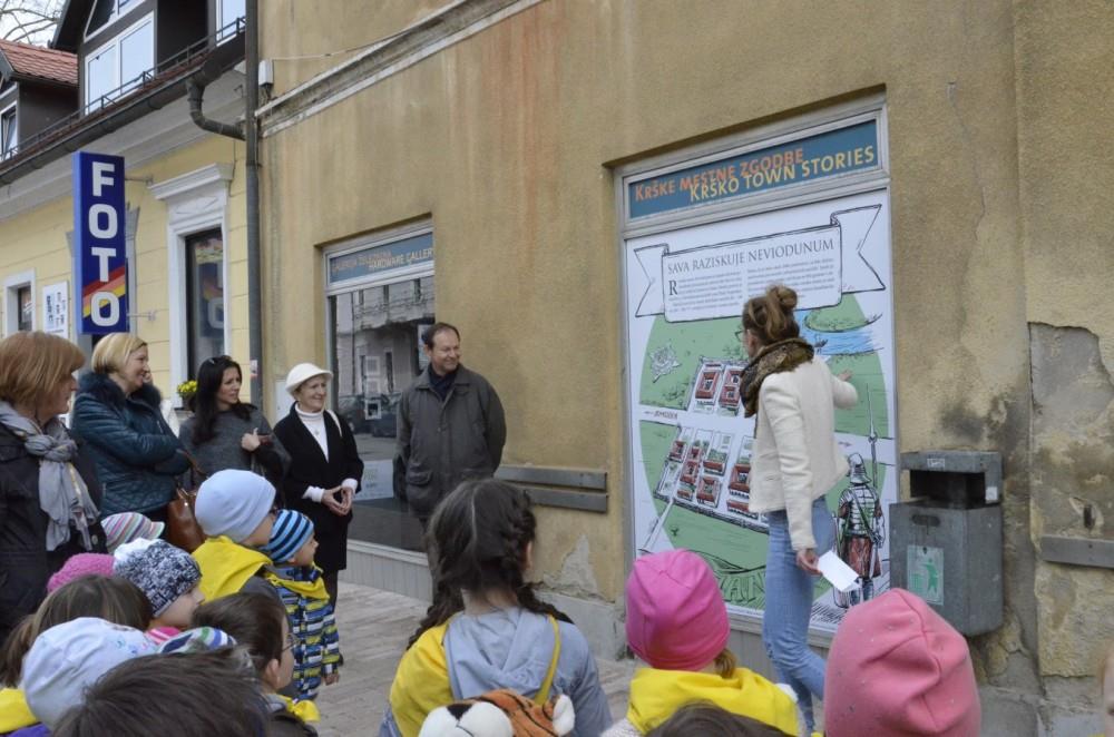 To so po besedah Nine Sotelšek iz Mestnega muzeja Krško, ki je zgodbe novih podob izložb predstavila najmlajšim iz vrtca Pravljica in vrtca Mali Princ, poimenovali Sava raziskuje Neviodunum. Avtorica ilustracij je akademska slikarka Milanka Fabjančič, v Galeriji Železnina pa se tokrat predstavlja Branka Pirc.