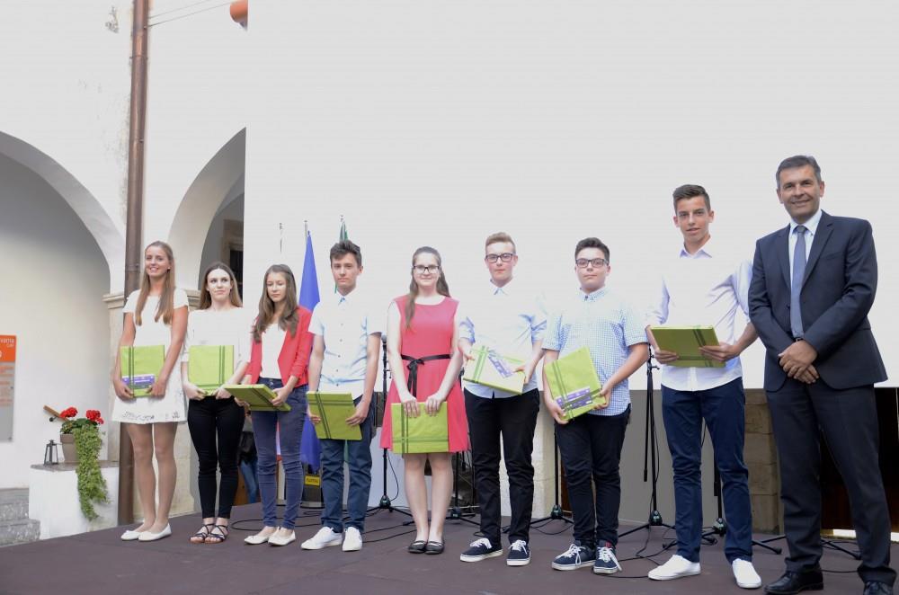 Župan občine Krško mag. Miran Stanko je v ponedeljek, 20. junija, v atriju gradu Rajhenburg v Brestanici čestital letošnjim najuspešnejšim učenkam in učencem osnovnih in srednjih šol občine Krško. Med te so se v tem šolskem letu vpisali: