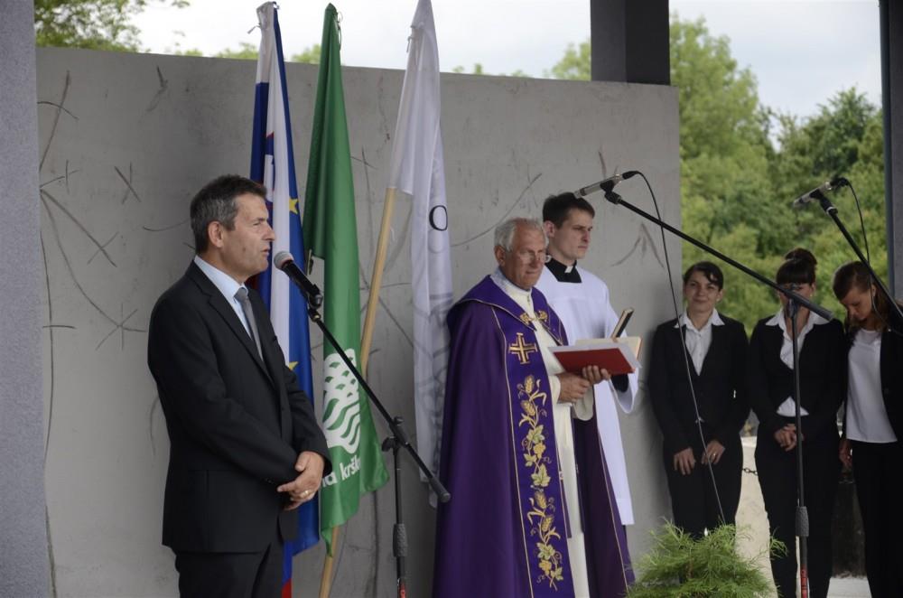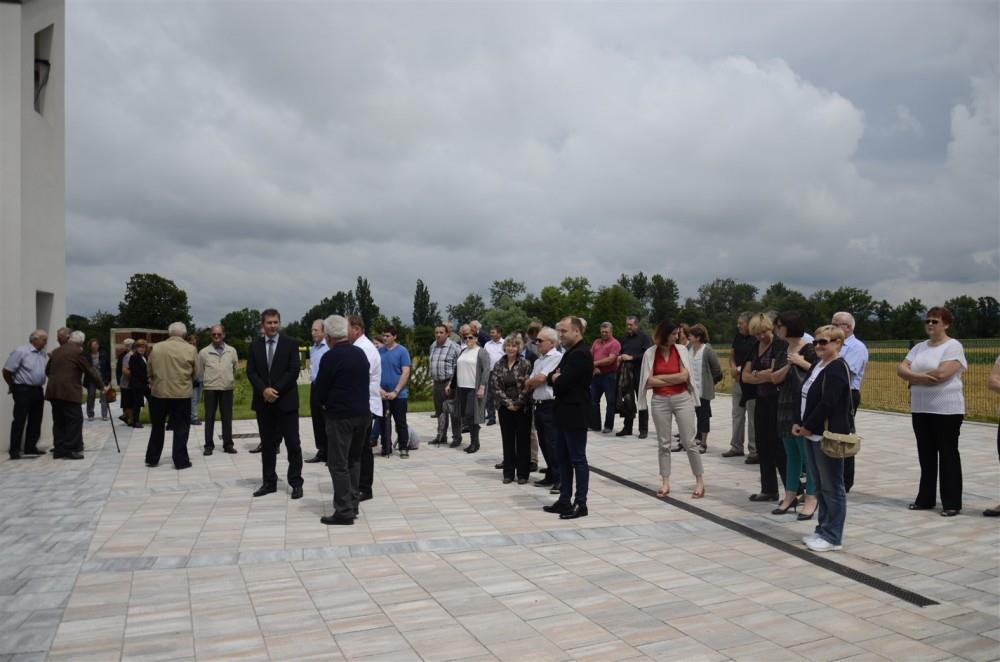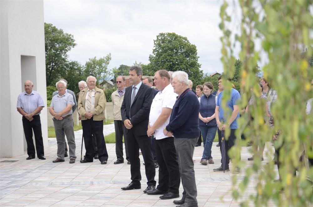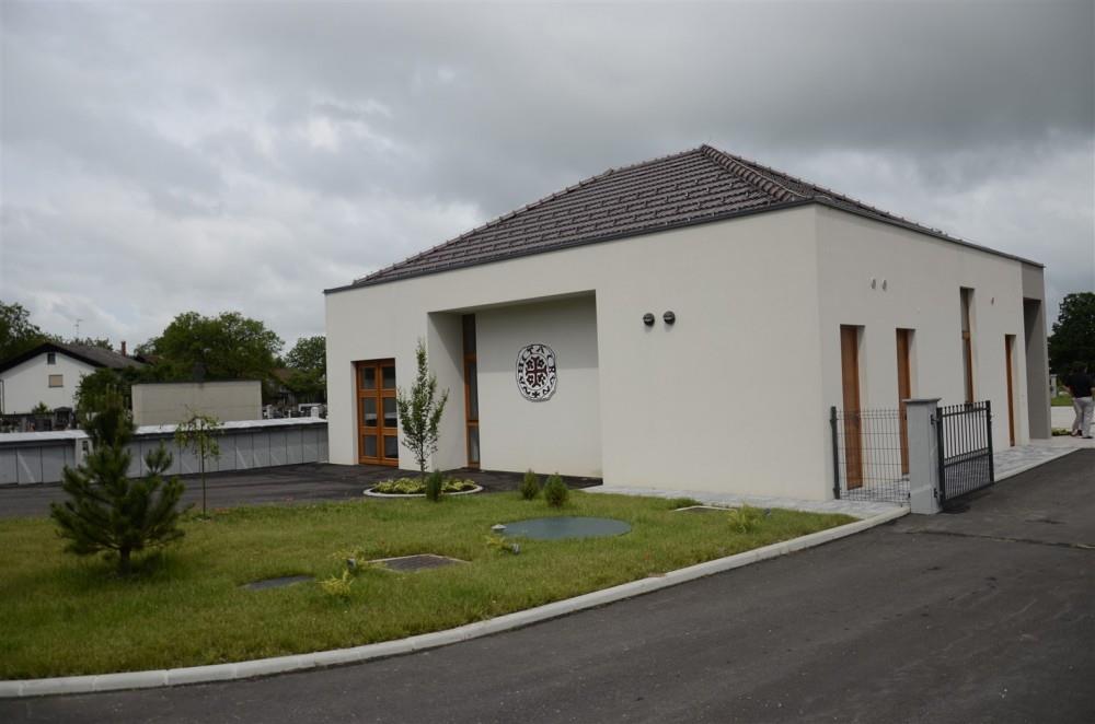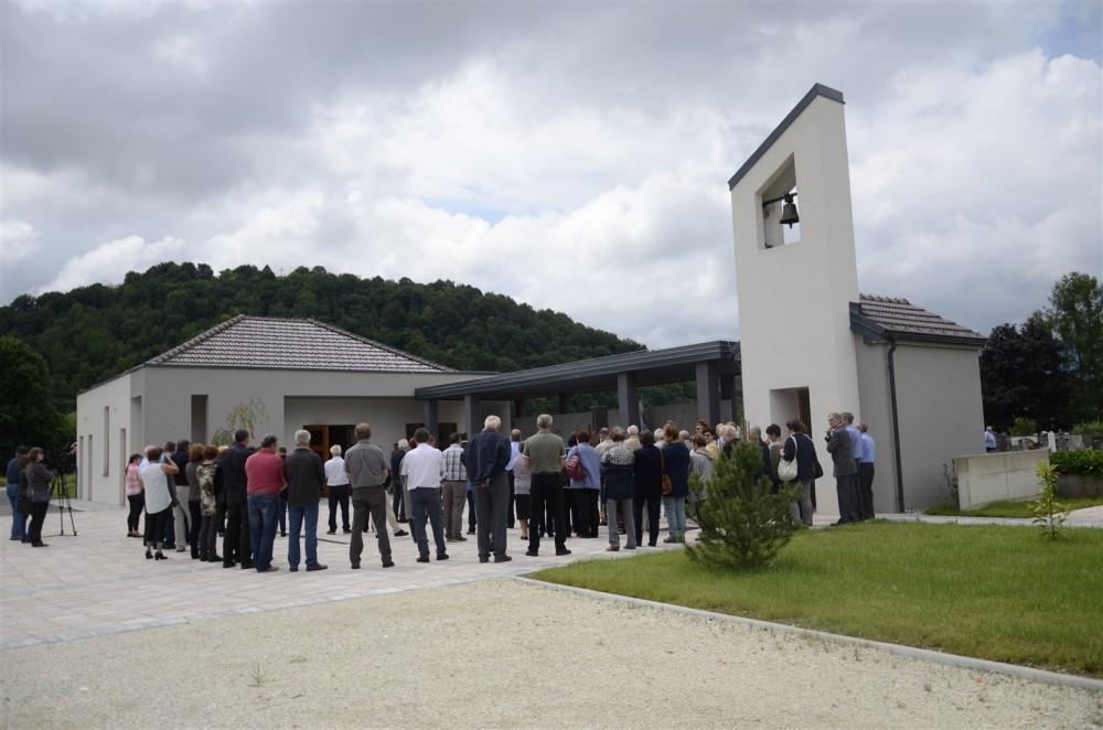 V okviru praznika občine Krško in praznika KS Podbočje so župan občine Krško mag. Miran Stanko, predsednik sveta KS Podbočje Janez Barbič in Silvester Lopatič kot predstavnik izvajalca, družbe SL- inženiring, včeraj dopoldan slovesno namenu predali novo mrliško vežico v Podbočju.