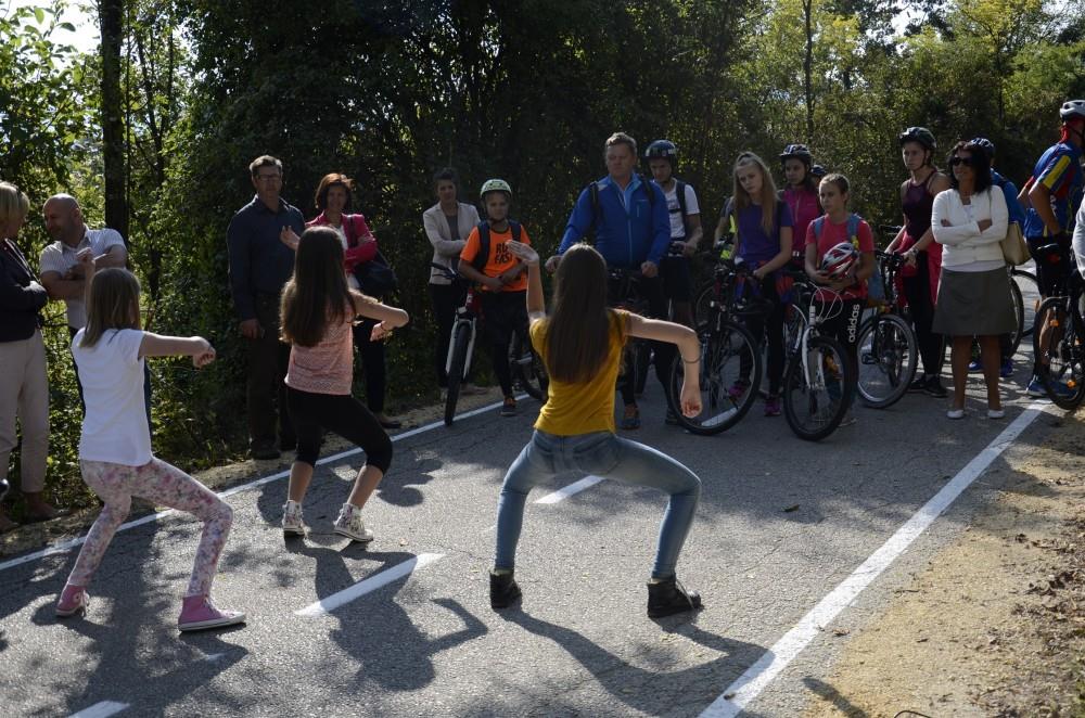 Po slovesnem odprtju nove kolesarske poti so jo kot prvi preizkusili kolesarji z Osnovne šole Leskovec pri Krškem in Osnovne šole Jurija Dalmatina Krško. S plesno točko pa so dogodek popestrile učenke OŠ Jurija Dalmatina Krško.