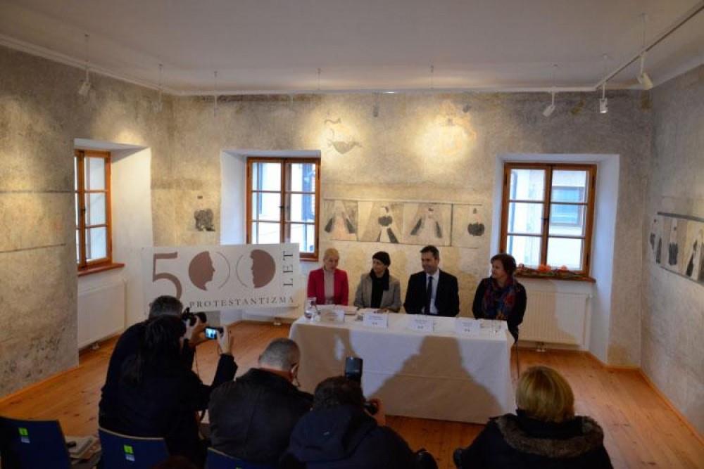 Projekt 500 let protestantizma, v okviru katerega so se v Občini Krško združili Valvasorjeva knjižnica Krško, Kulturni dom Krško, enota Mestni muzej Krško, Javni sklad za kulturne dejavnosti RS OI Krško, Slovensko protestantsko društvo Primož Trubar - podružnica Posavje, Krščanska adventistična cerkev, Osnovna šola Adama Bohoriča Brestanica, Osnovna Šola Jurija Dalmatina Krško, Osnovna šola dr. Mihajla Rostoharja, Vrtec Brestanica, nekatera društva in Posavski muzej Brežice, so na tiskovni konferenci, ki je danes potekala v Mencingerjevi hiši, predstavili župan Občine Krško, mag. Miran Stanko, koordinatorka projekta Polona Brenčič iz Valvasorjeve knjižnice v Krškem ter vodja izpostave Javnega sklada za kulturne dejavnosti RS, Sonja Levičar in vodja muzejskih enot Kulturnega doma Krško, dr. Helena Rožman.