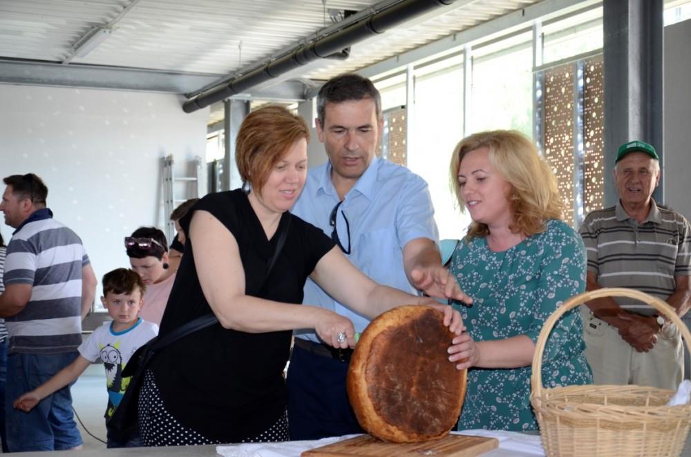 Župan občine Krško mag. Miran Stanko, predsednica sveta KS mesta Krško mag. Nataša Šerbec in skrbnica tržnice iz podjetja Agro Posavje Kristina Ogorevc Račič so v soboto slovesno namenu predali obnovljeno tržnico na Vidmu.