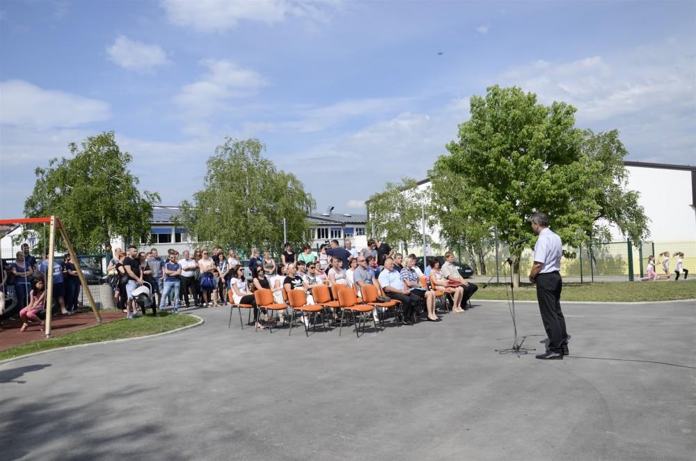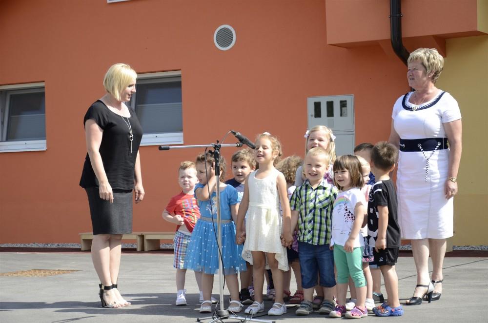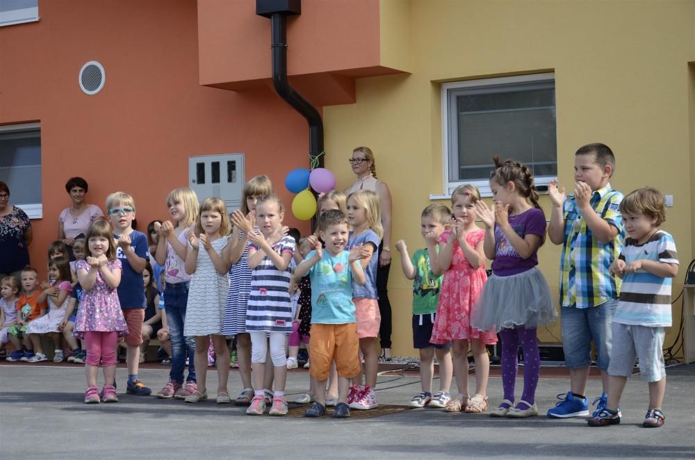 Ob spremljajočem programu so se s pesmijo in plesom skupaj s Piko Nogavičko, ki je povezovala program, predstavili najmlajši iz vseh oddelkov enote vrtca s svojimi vzgojiteljicami. Sicer pa po besedah ravnateljice OŠ Leskovec pri Krškem Jožice Repše, ki je izrazila zadovoljstvo ob obnovi, pod okrilje njihove osnovne šole sodi več enot vrtca s skupno 15 skupinami malčkov.