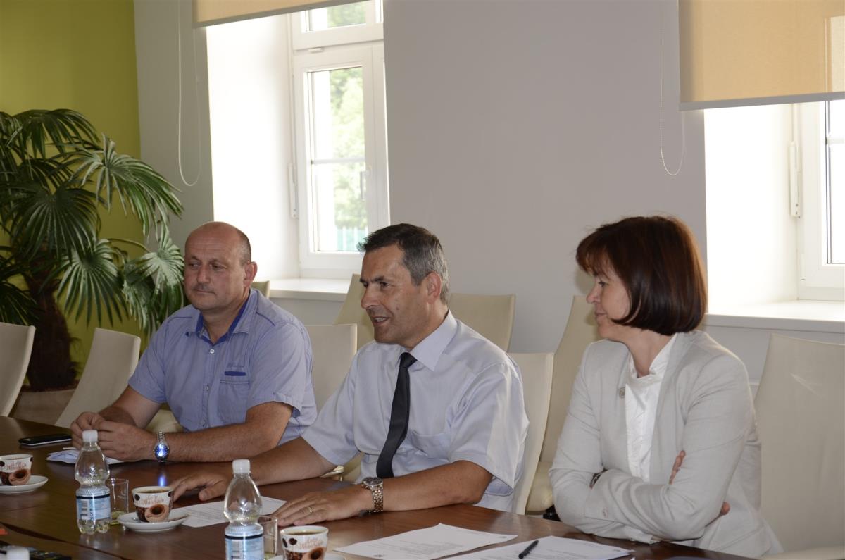 Krško, 7. julij 2017 - Župan občine Krško mag. Miran Stanko je danes s sodelavci gostil ministra za infrastrukturo dr. Petra Gašperšiča s sodelavci in predstavnike Direkcije RS za infrastrukturo. Uvodoma so se na na krajšem sestanku pogovorili o aktualni problematiki - od izgradnje odlagališča NSRAO, izgradnje državne cestne infrastrukture na območju občine do ureditve nadhoda nad železniško progo na železniški postaji v Krškem. Kot je v izjavi za medije poudaril minister, bodo pobude, ki jih je dodatno posredoval župan občine Krško, še preučili.