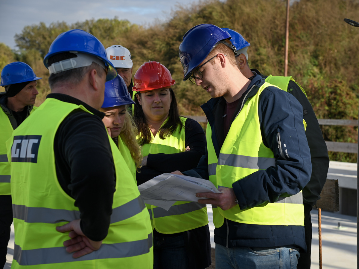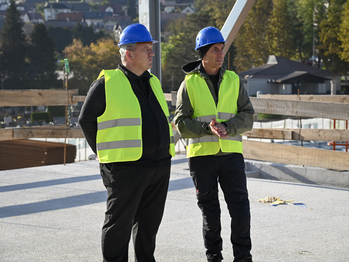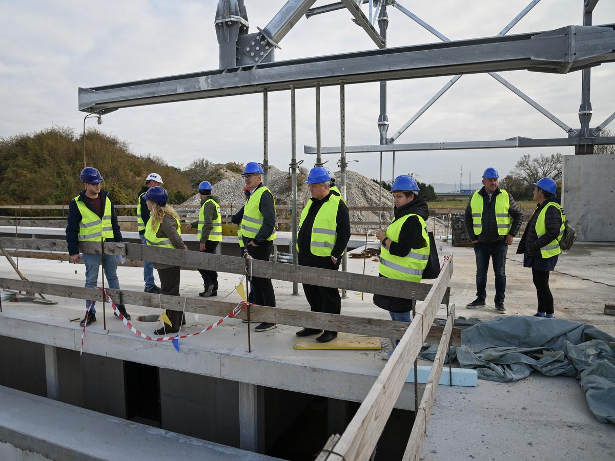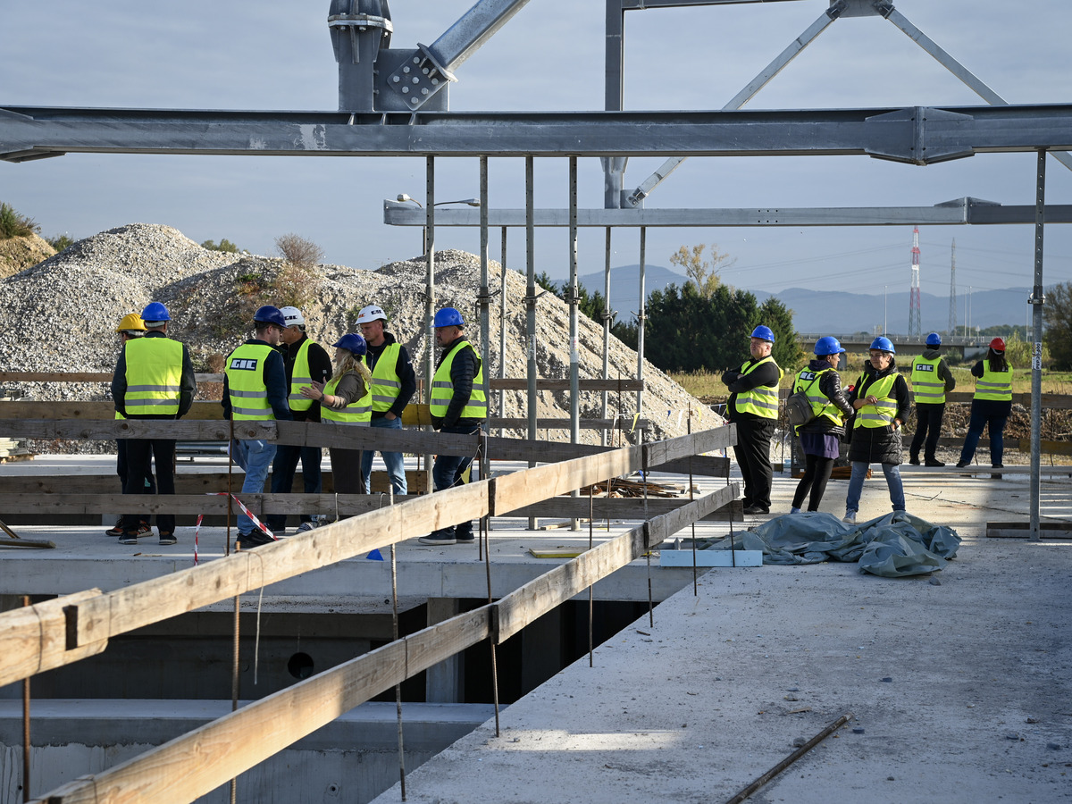 Po gradbišču sta jih popeljala vodja projekta na Mestni občini Krško Luka Žokalj in vodja del na gradbišču Smiljan Novak iz podjetja GIC Gradnje, ki sta udeležencem predstavila potek del ter podala podrobnejši vpogled v časovnico gradnje.