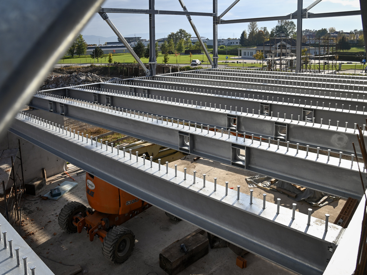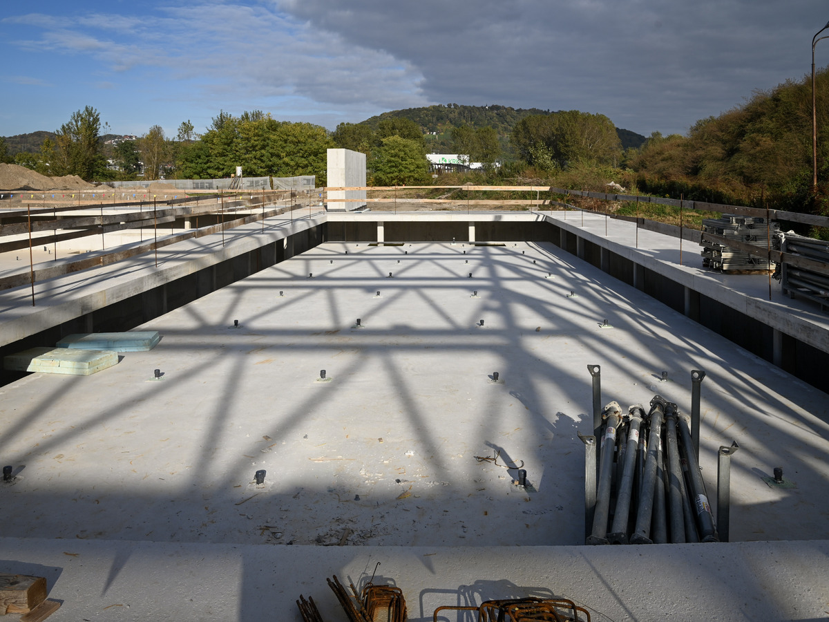 Na gradbišču se sestavlja kovinska konstrukcija za streho, zidajo se pregradne stene, vzporedno pa potekajo elektro in strojno inštalacijska dela (vgradnja prezračevalnih kanalov, vodovod, odvodnjavanje …). V izdelavi je bazenska školjka, prav tako pa se že vgrajuje določena bazenska tehnologija, potrebna za delovanje bazena (predinštalacije in oprema).